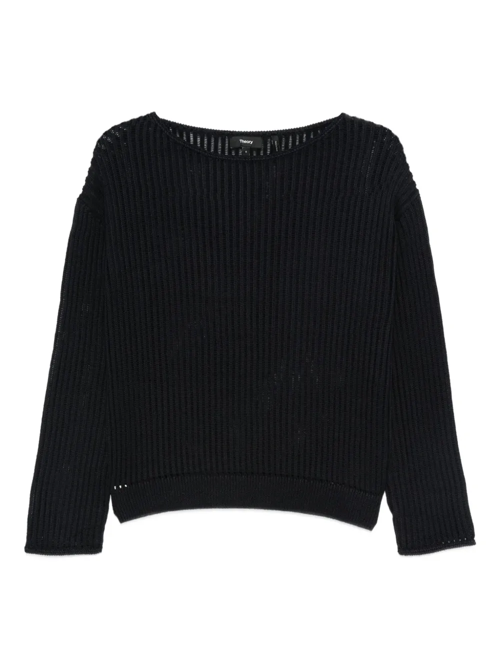 Свитер в рубчик с вырезом-лодочкой Theory, синий