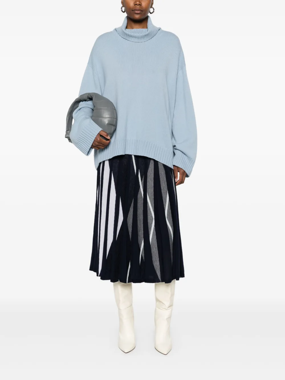 Свитер в рубчик с высоким воротником Eric Bompard, синий