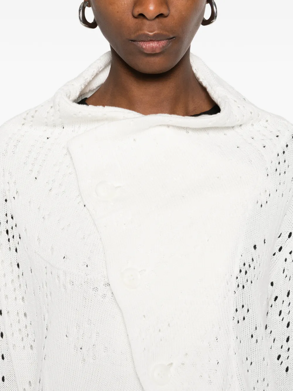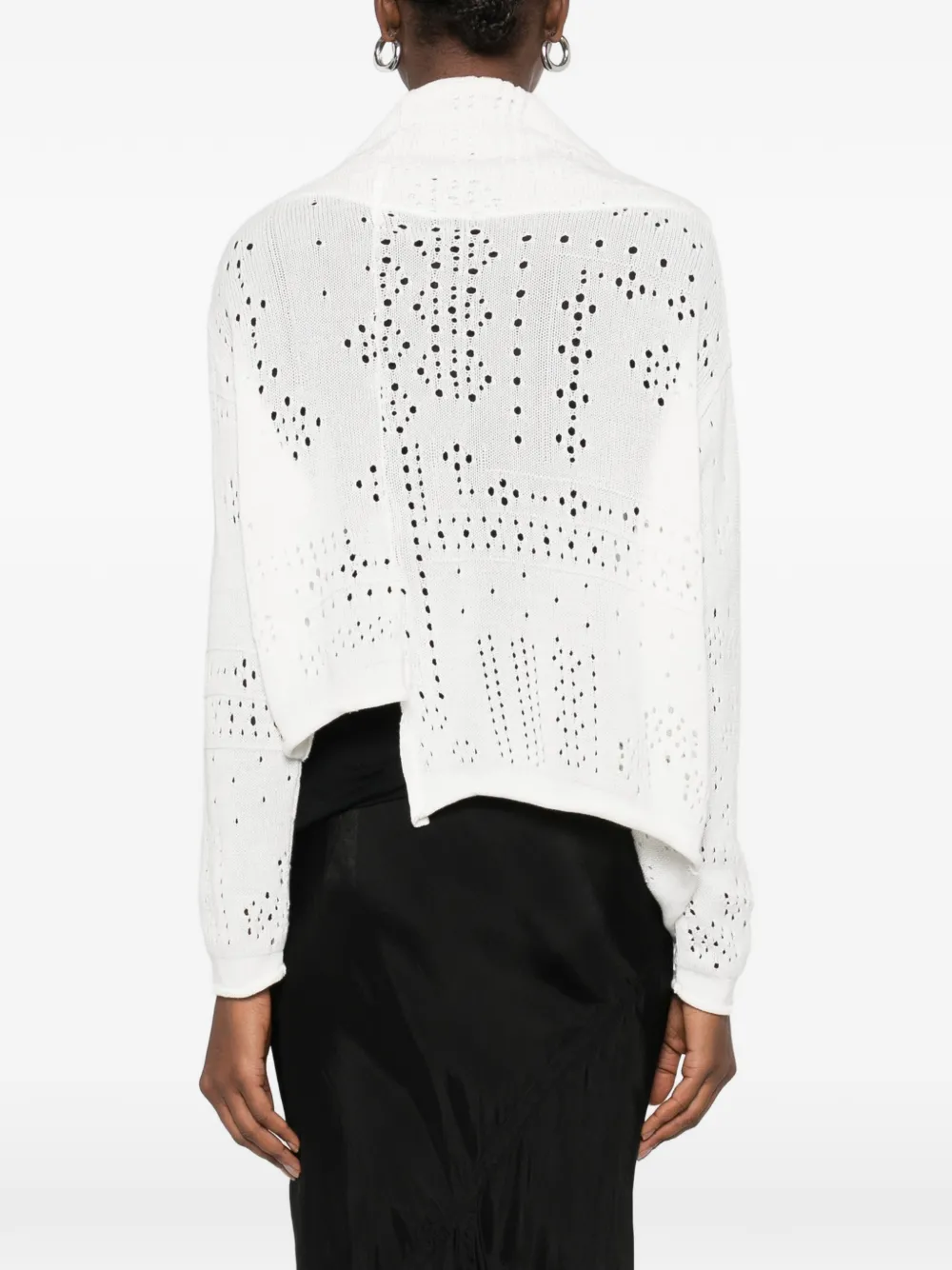 Вязаный топ кремового цвета с асимметричным краем из хлопка в технике открытой вязки
