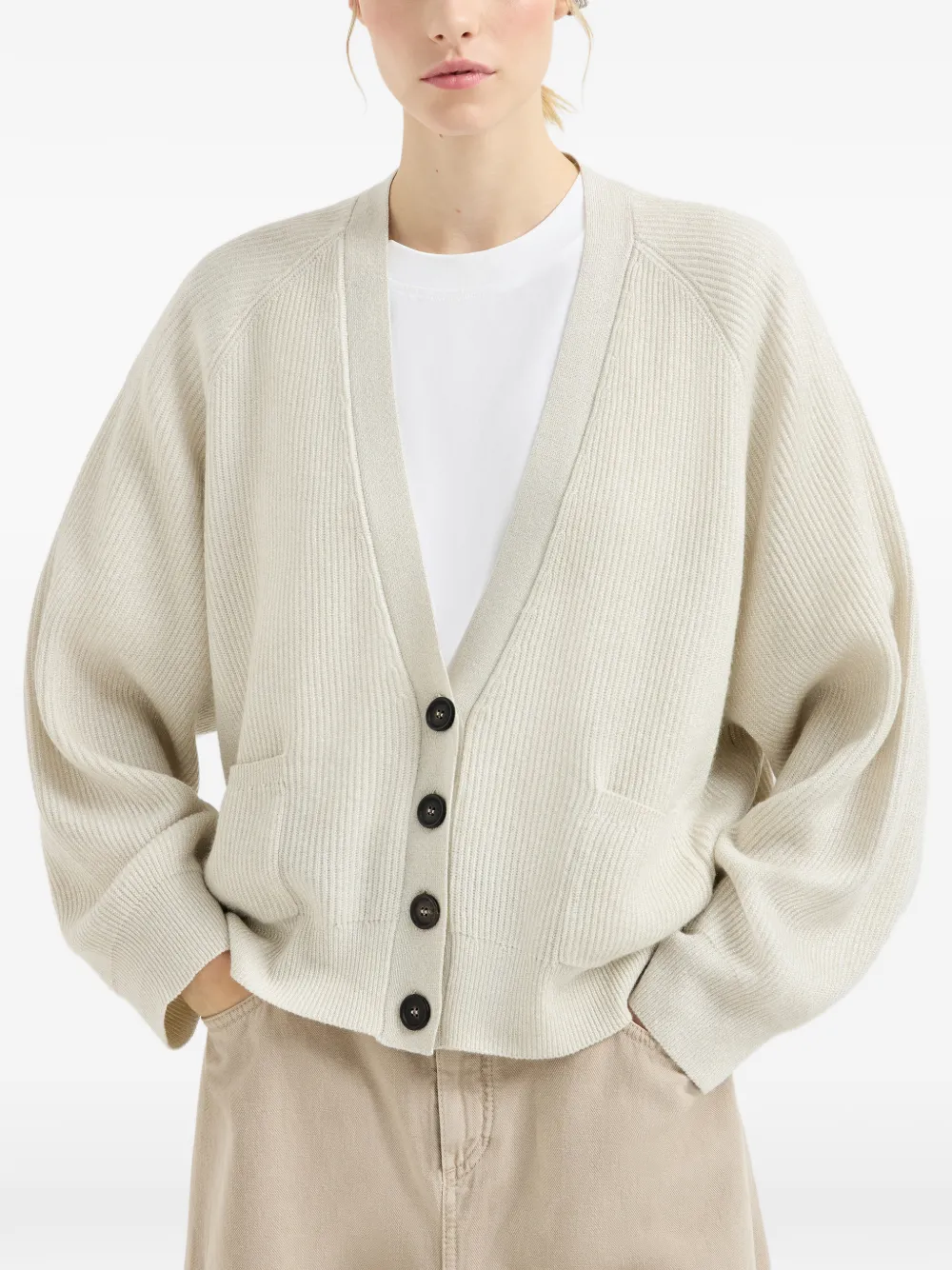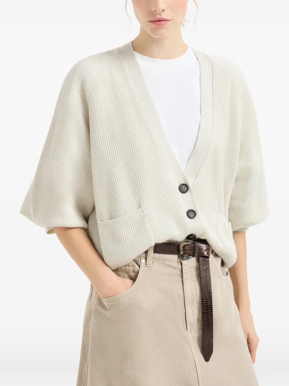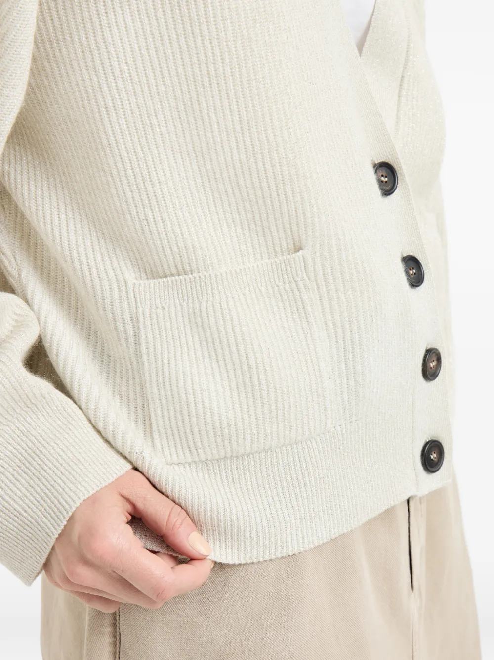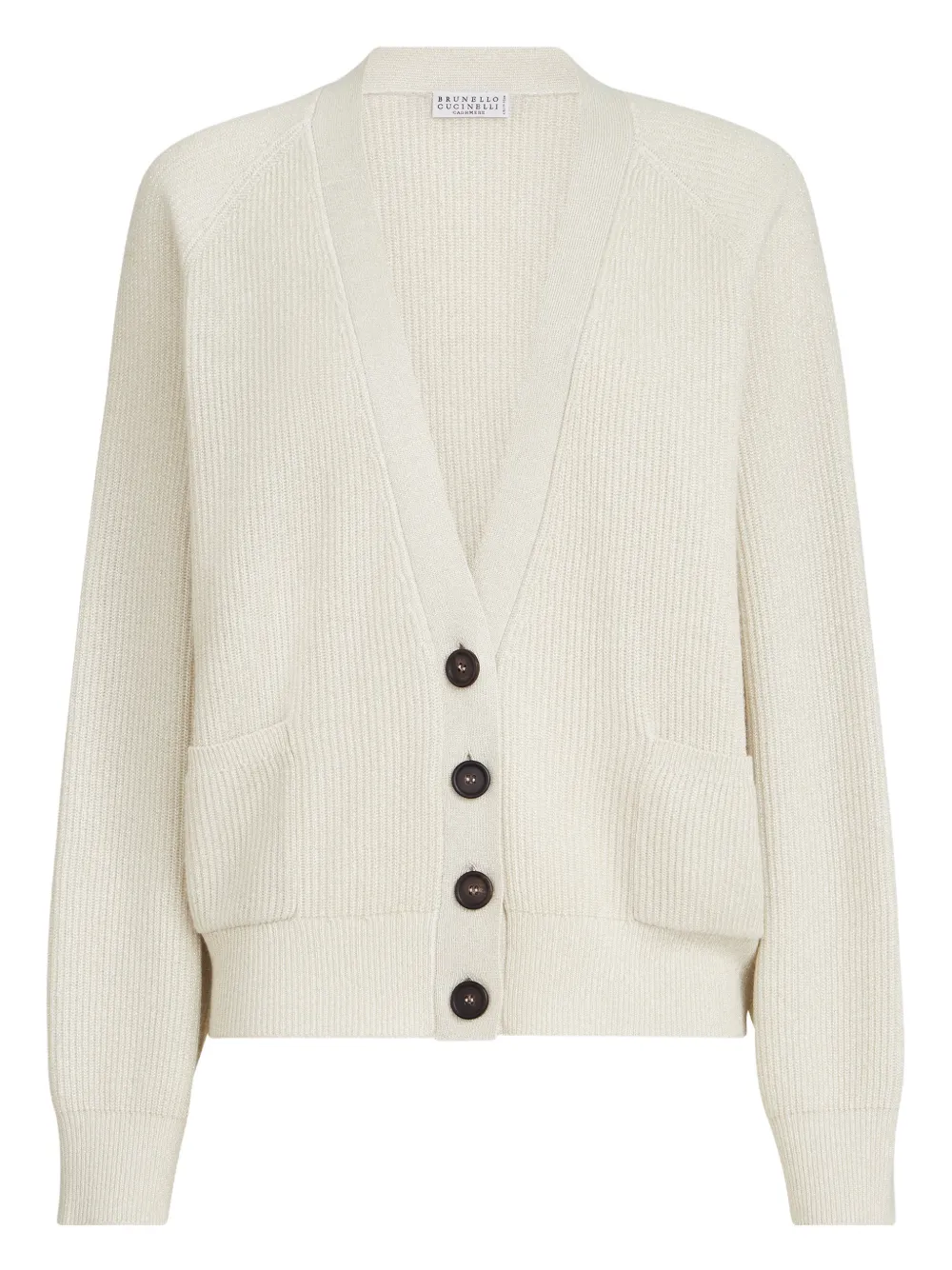 Кардиган с карманами в рубчик Brunello Cucinelli, нейтральный