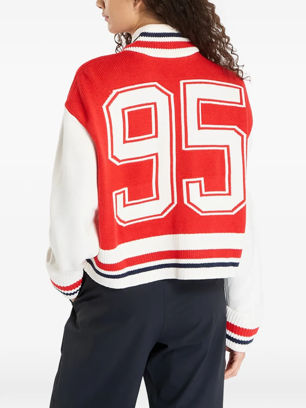 Красные полоски, ребристая отделка, застежка-молния, логотип, номер, длинные рукава