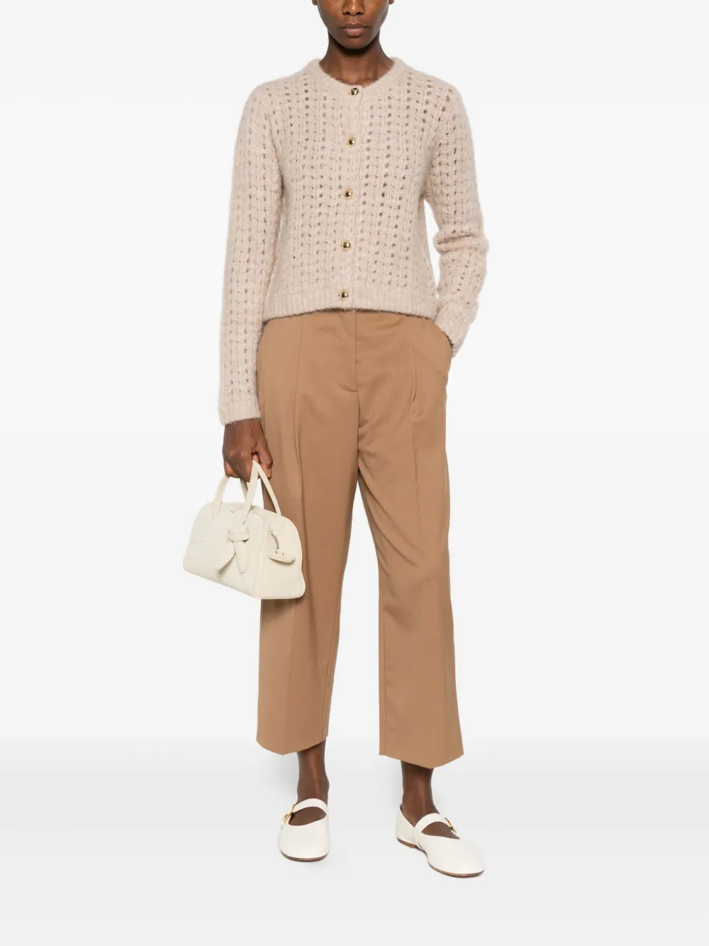 Бежевый шерсть застежка на пуговицы спереди открытая вязка длинные рукава