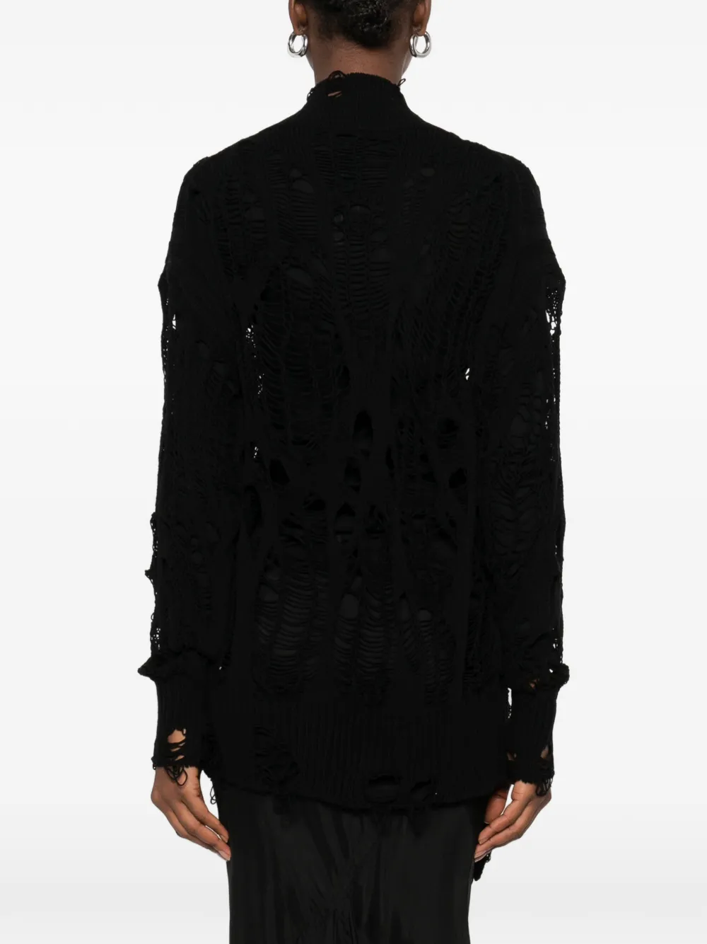 Черный свитер с эффектом потертости, открытой вязкой, высоким воротником и ребристыми манжетами