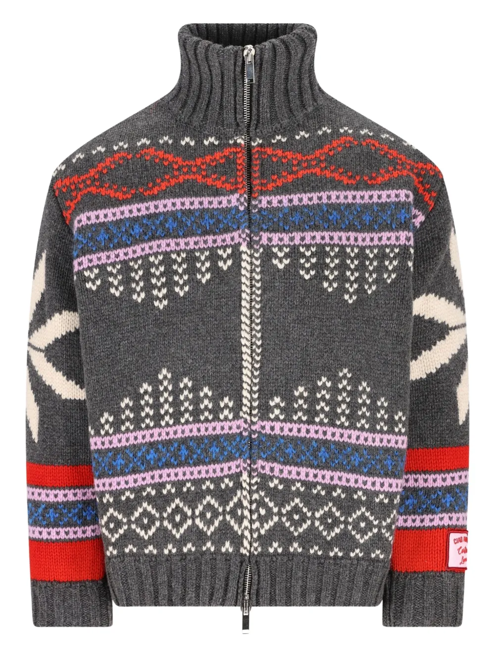 Серый жаккардовый узор Fair Isle, надпись 'Cortina Lover' спереди, застежка-молния спереди, высокий воротник, нашивка с логотипом на рукаве