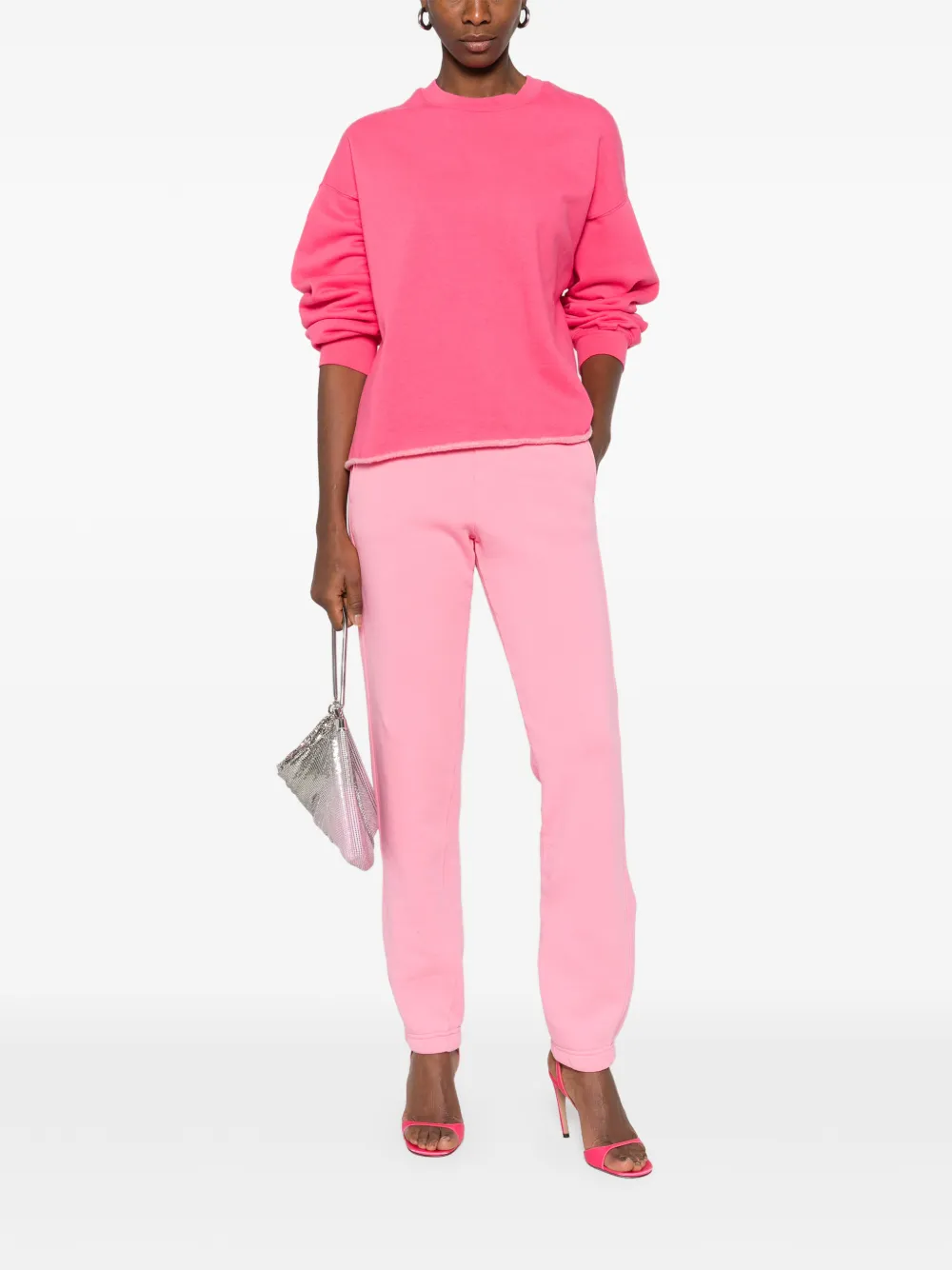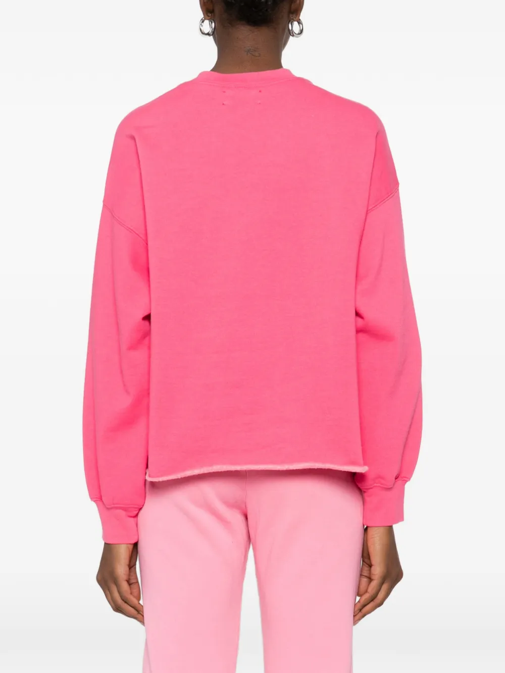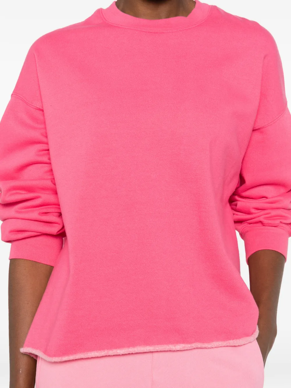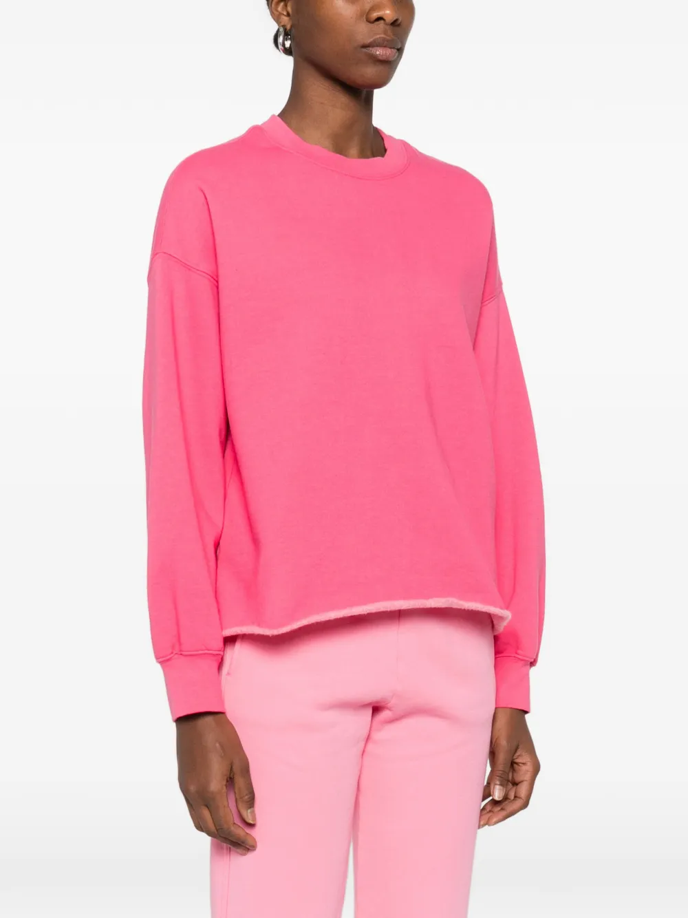 Розовый джемпер с необработанным краем, круглым вырезом, длинными рукавами и ребристыми манжетами