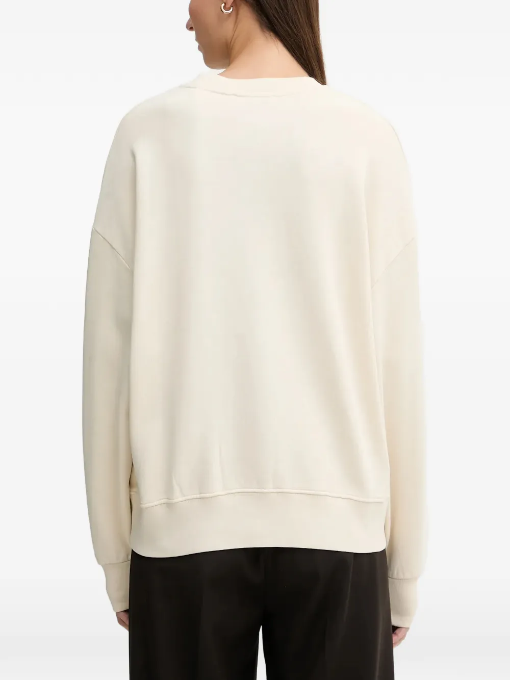 Кремовый свитер с вышитым логотипом, круглым вырезом, длинными рукавами, ребристыми манжетами и нижним краем