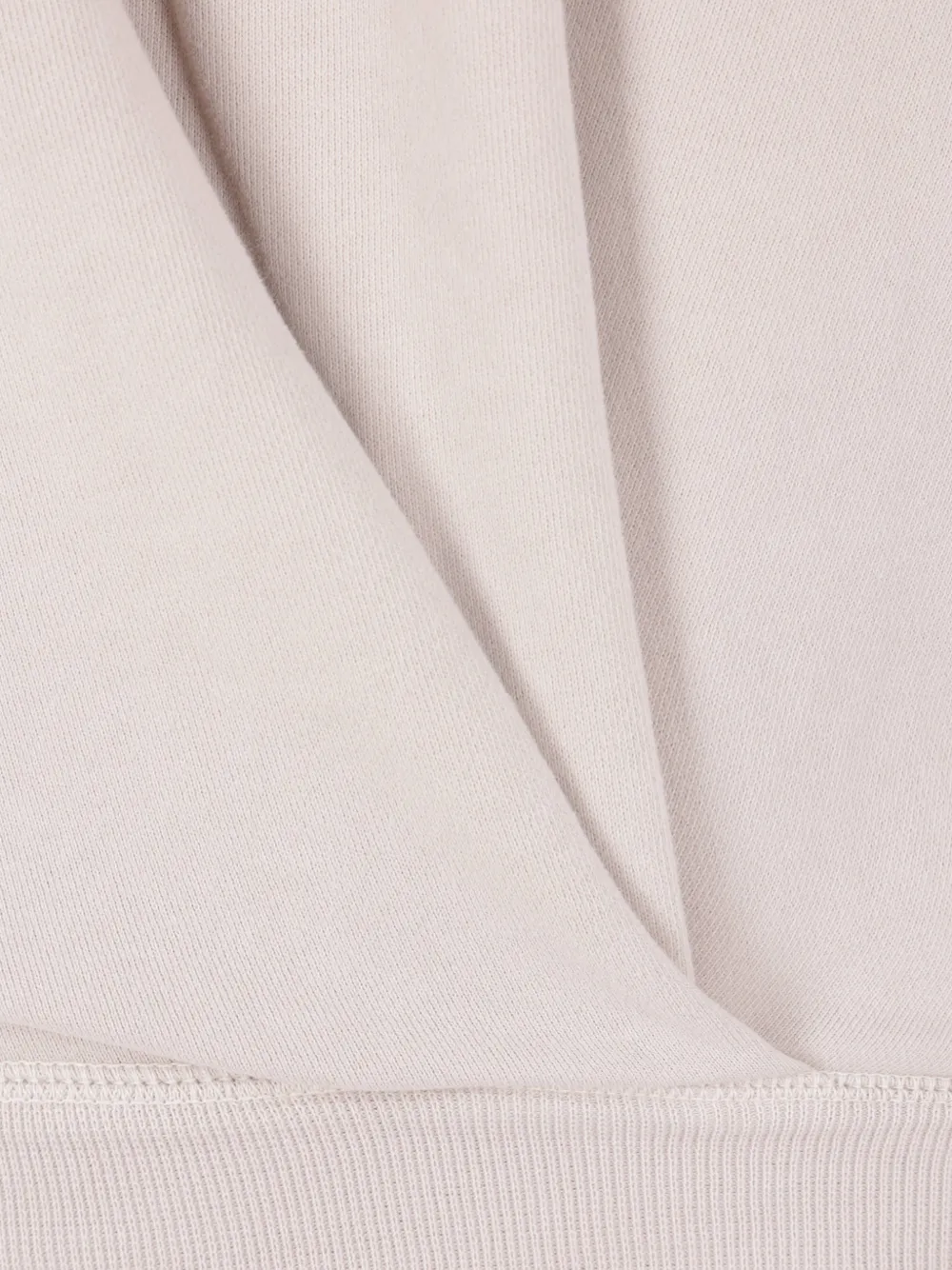 Бежевый, драпированный крой, круглый вырез, длинные рукава, ребристый низ, вышитый логотип