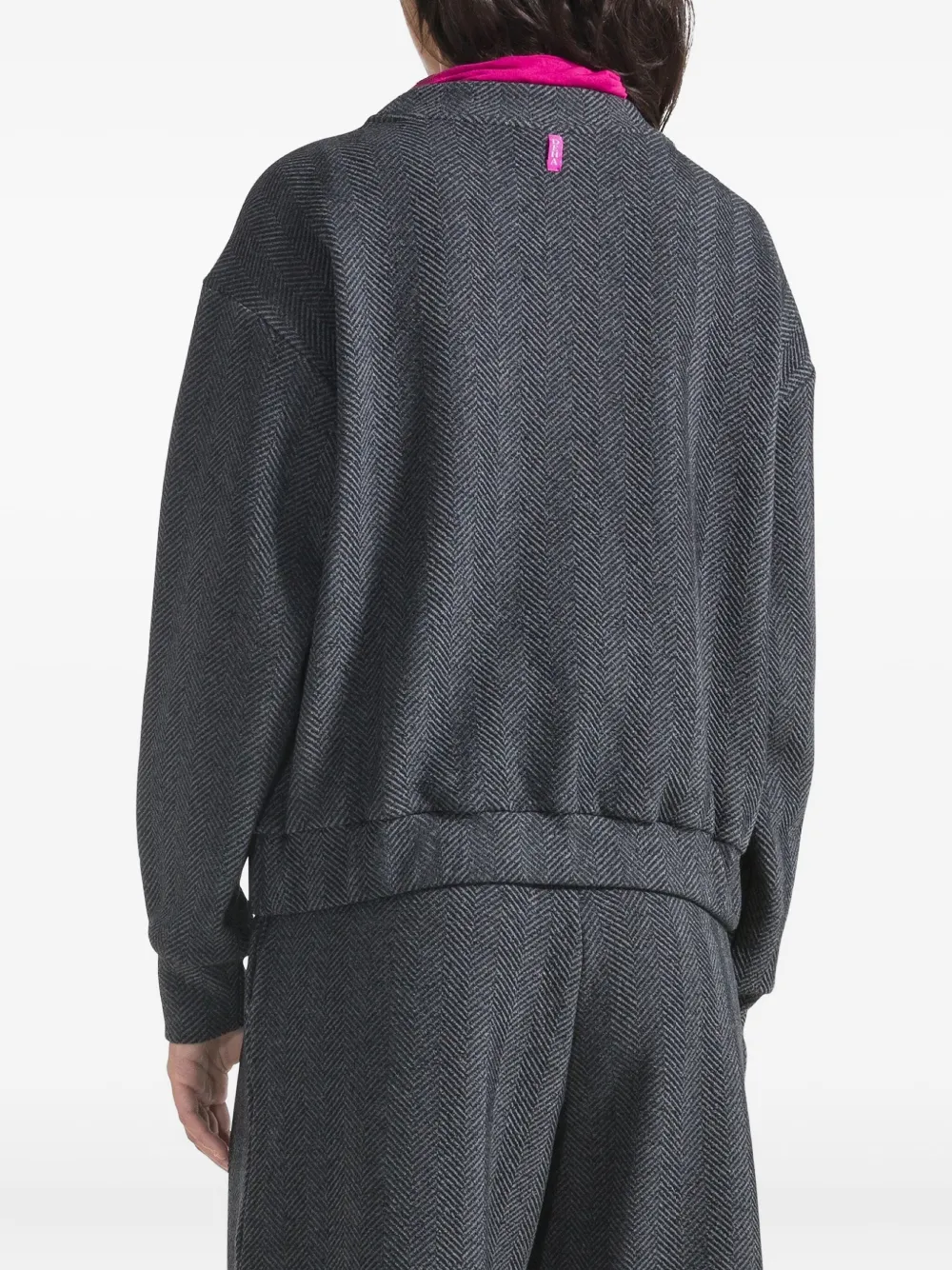 Серый узор "елочка", круглый вырез, длинные рукава, ребристые края и манжеты