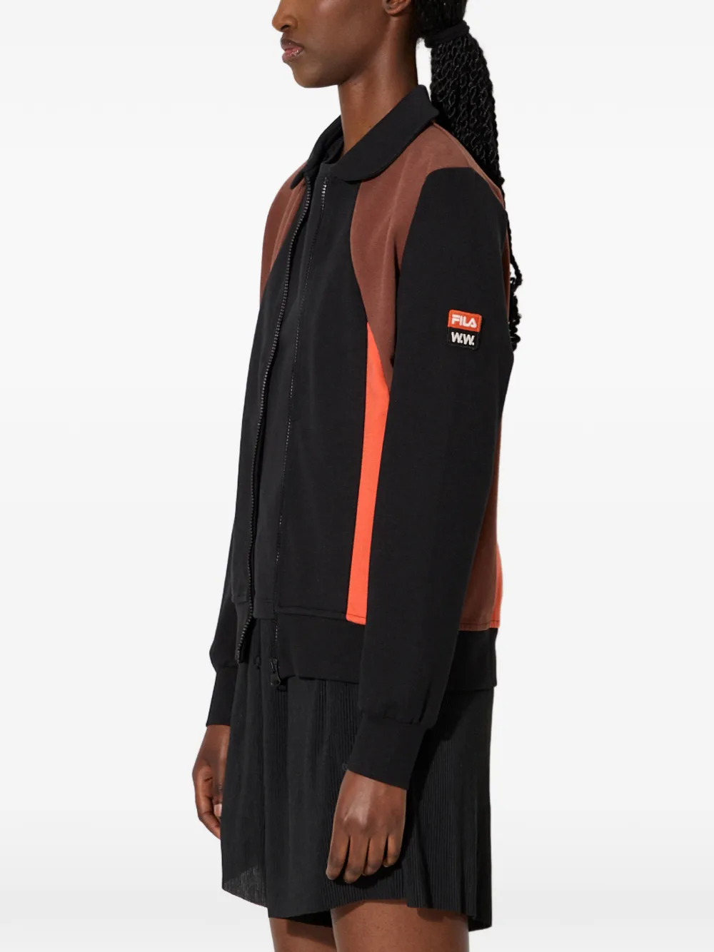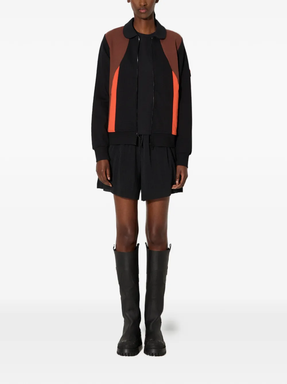 Черный топ с длинными рукавами, застежкой на молнии и нашивкой с логотипом