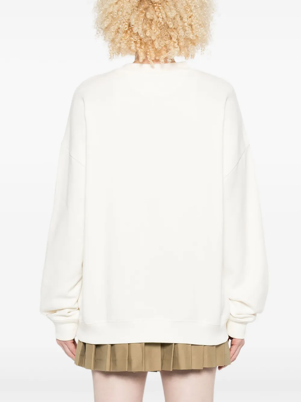 Белый длинные рукава круглый вырез свободный крой принт с текстом