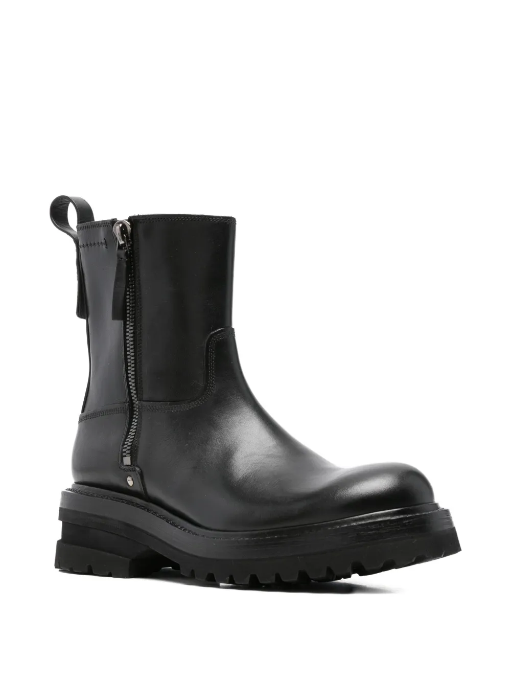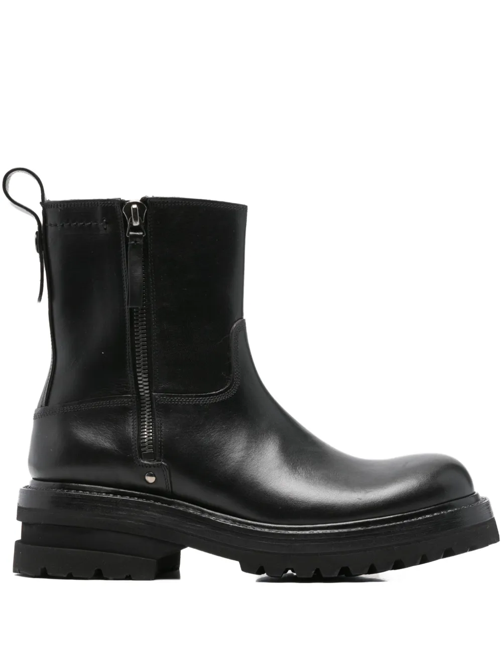 Черныйкожазастежка-молния сбокупетля для натягиваниярифленая подошва