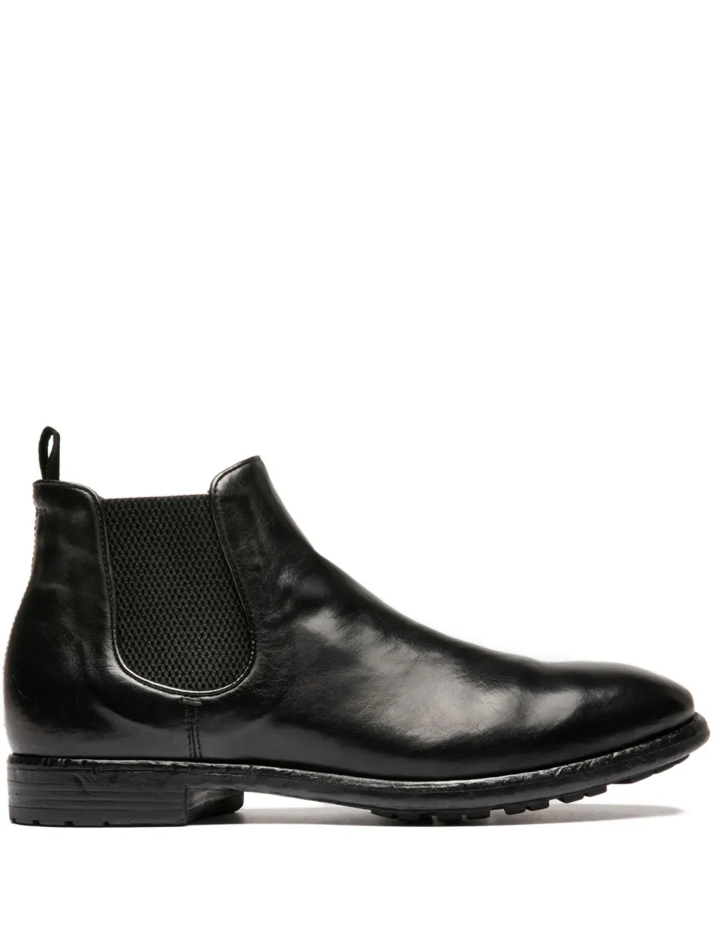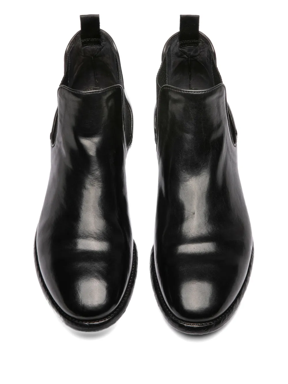 Верх из черной кожи, эластичные боковые вставки, круглый носок, плоский каблук, резиновая подошва