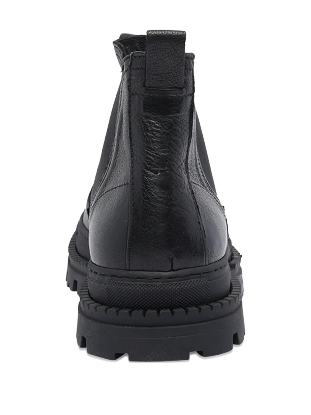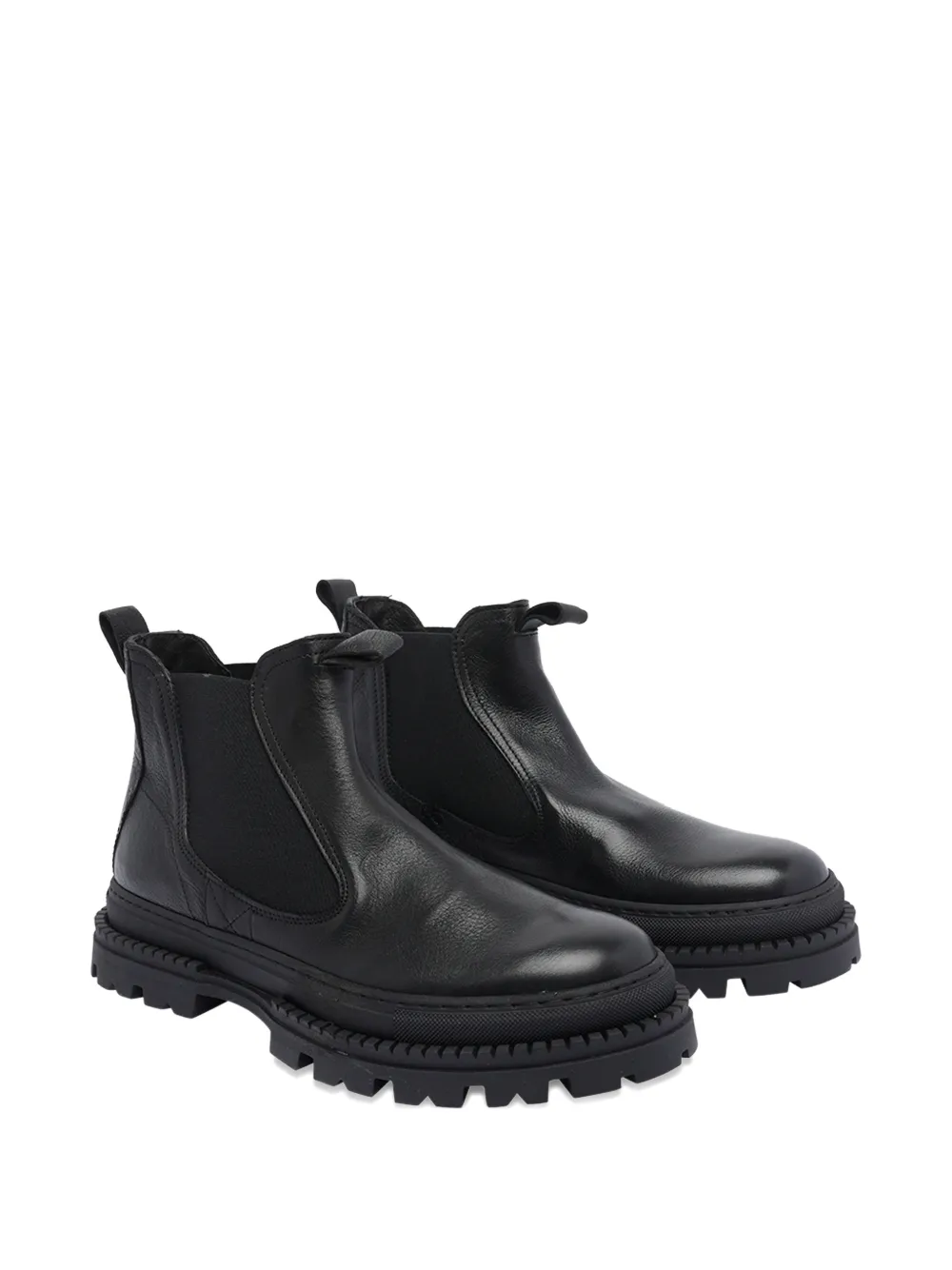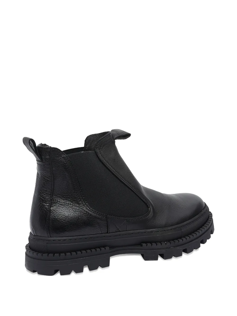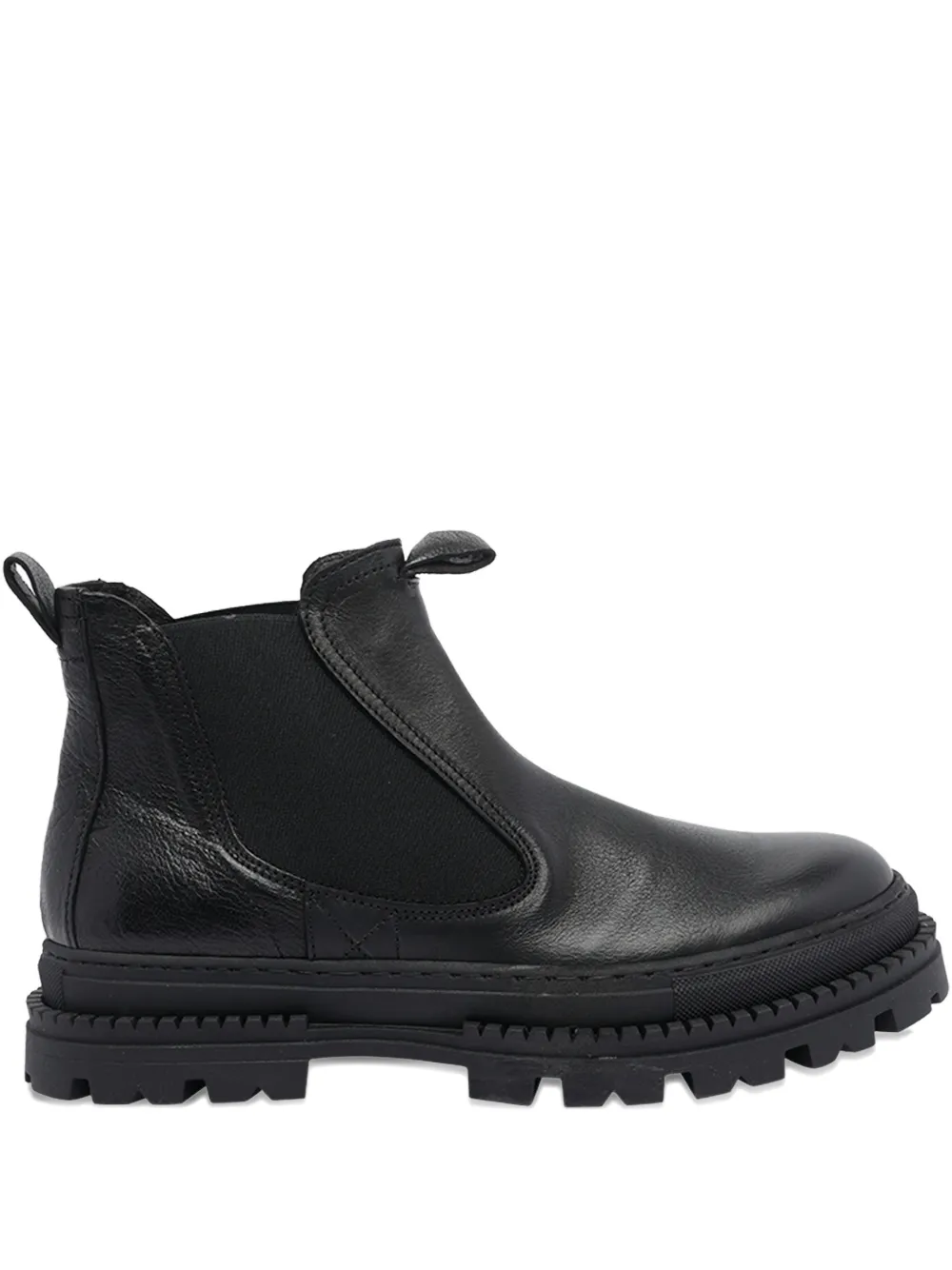 Верх из черной кожи, круглый носок, петля для натягивания у горловины, рифленая подошва