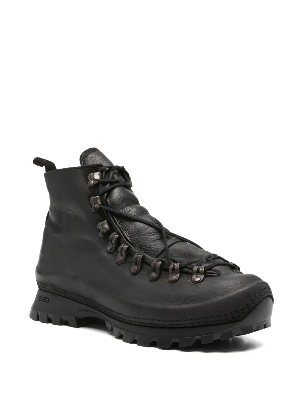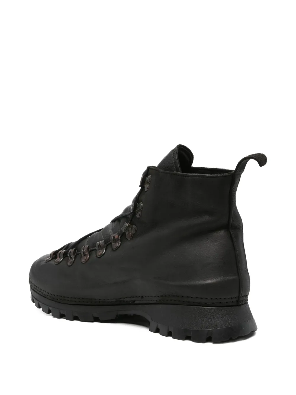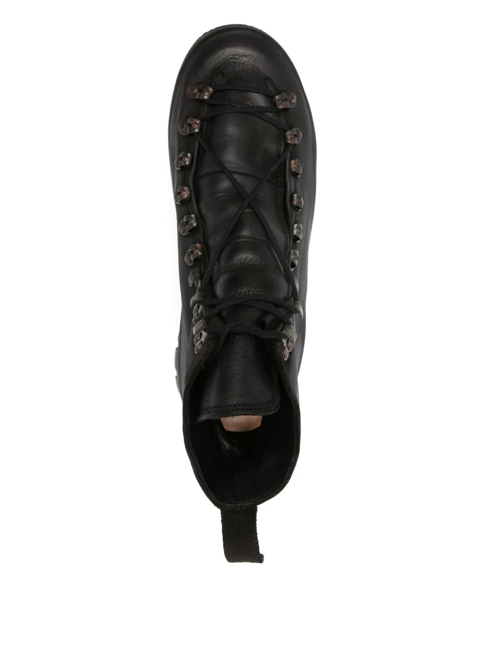 Черная кожаная обувь на шнуровке с резиновой подошвой и круглым носком