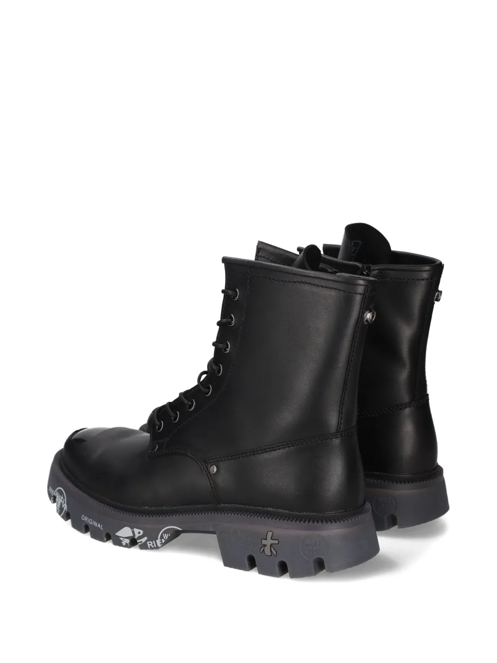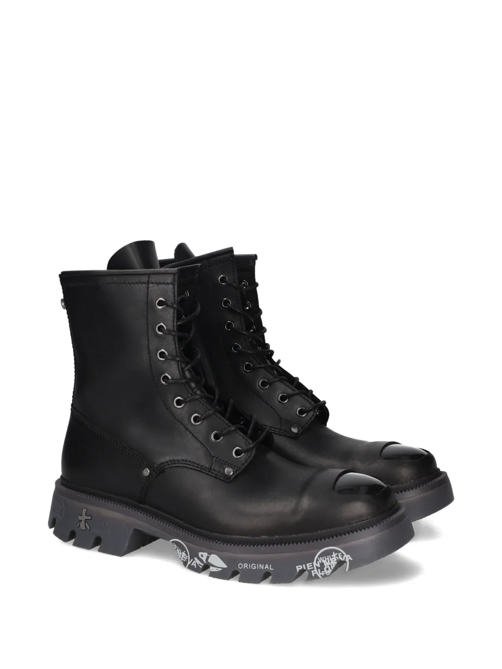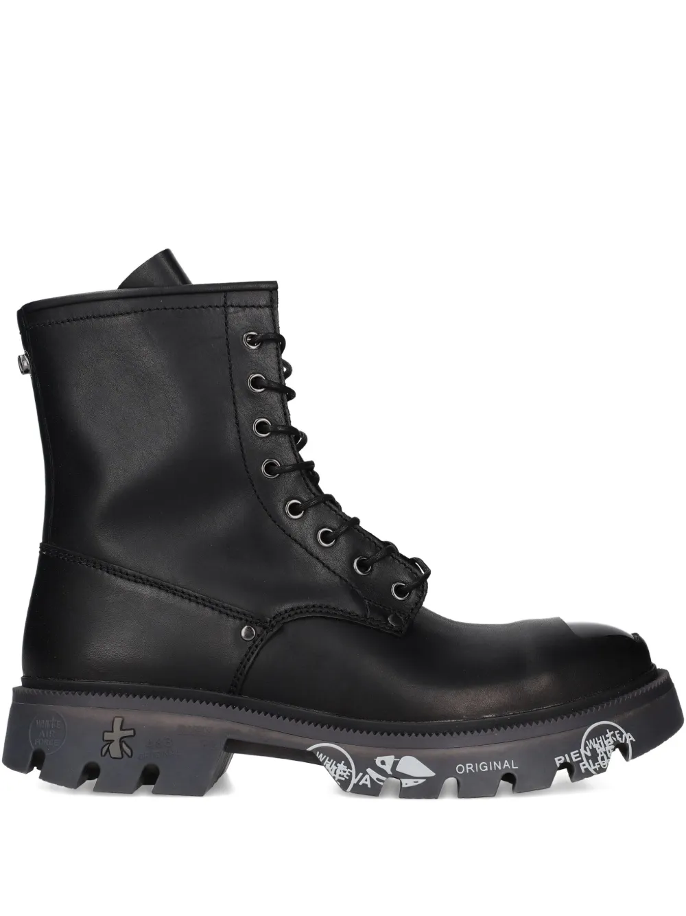 Черная телячья кожа, шнуровка, застежка-молния сбоку, тракторная подошва, принт на подошве