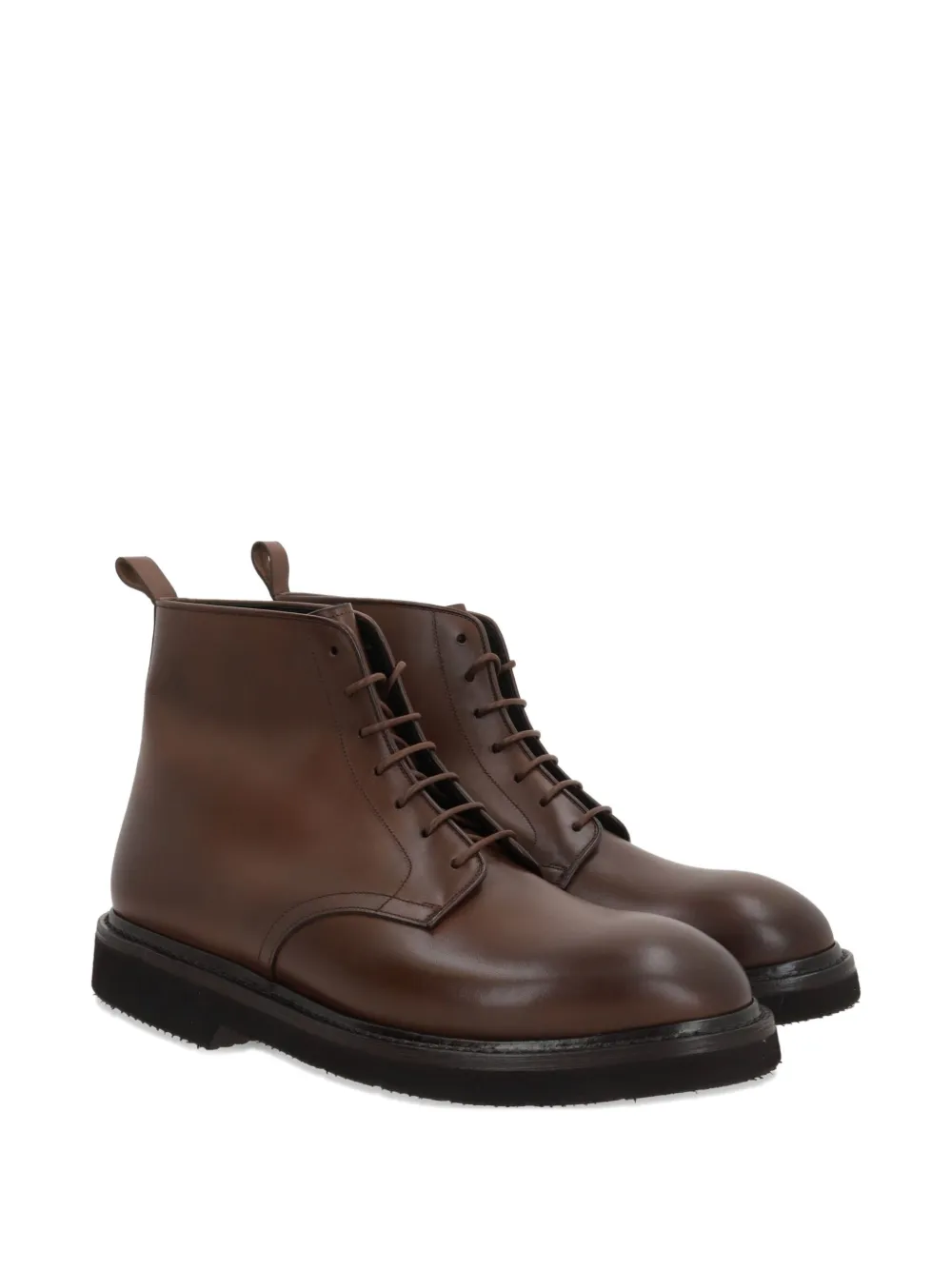Коричневые, шнуровка, петля сзади, круглый носок, рифленая подошва