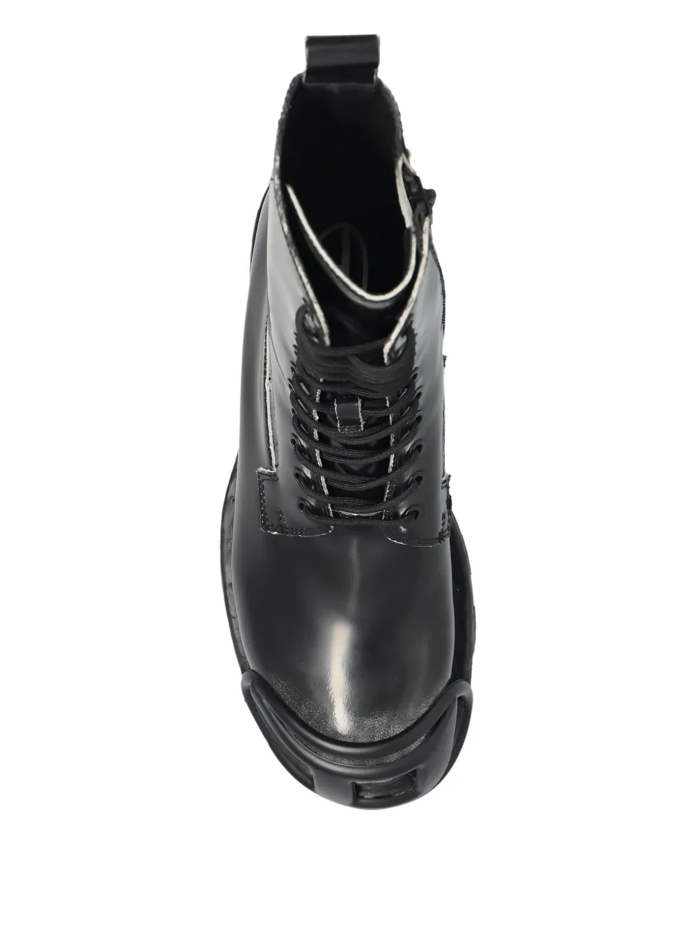 Черные кожаные высокие кеды на массивной подошве с шнуровкой и мысом