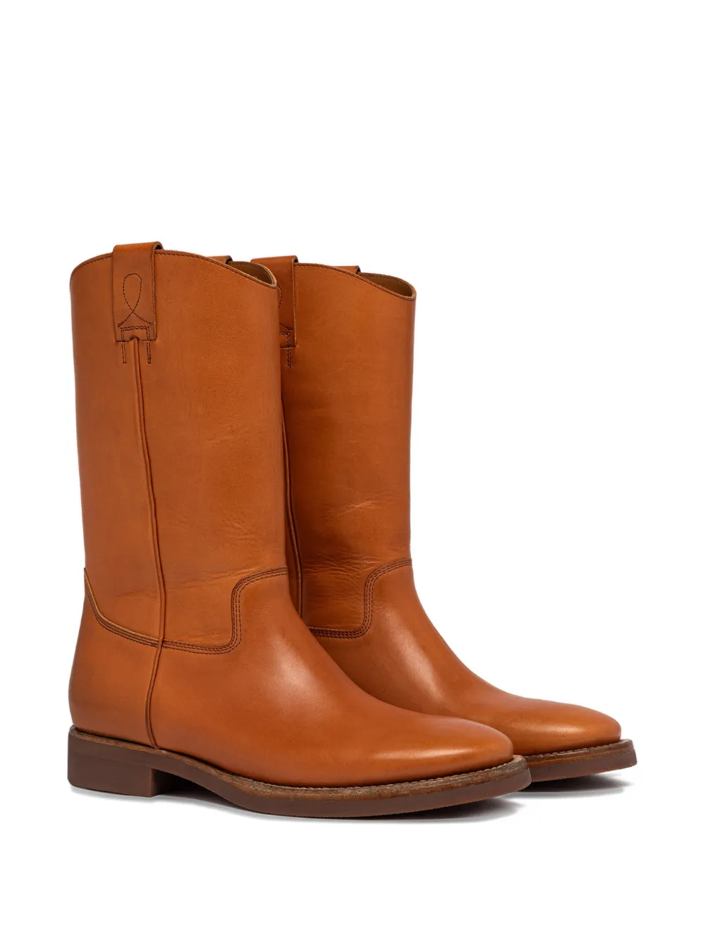 Топ медового цвета в стиле pull-on, петля для натягивания, низкий широкий каблук, строчка, закругленный носок