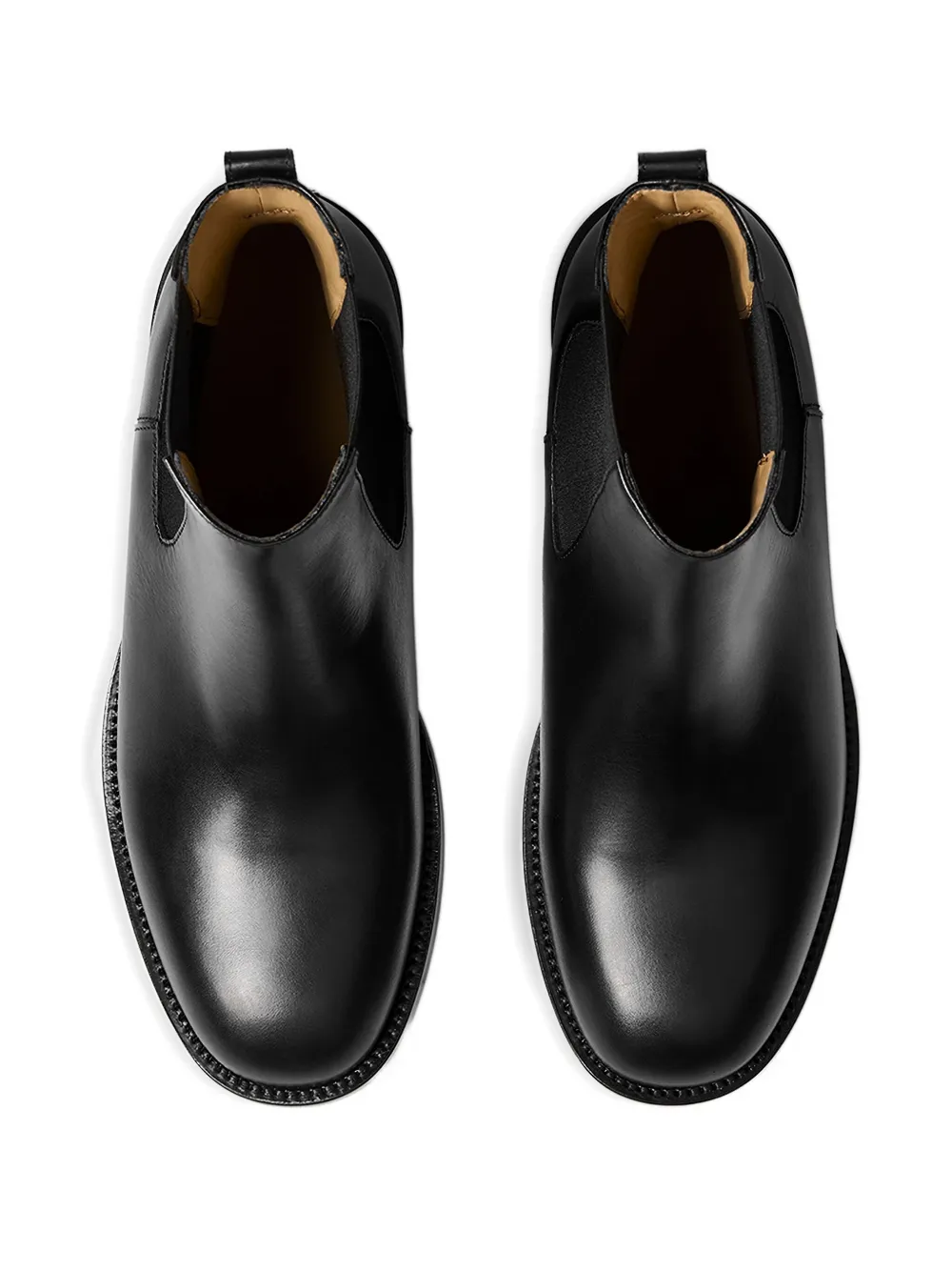 Черные вытяжные петли, эластичные боковые вставки, круглый носок, плоская подошва