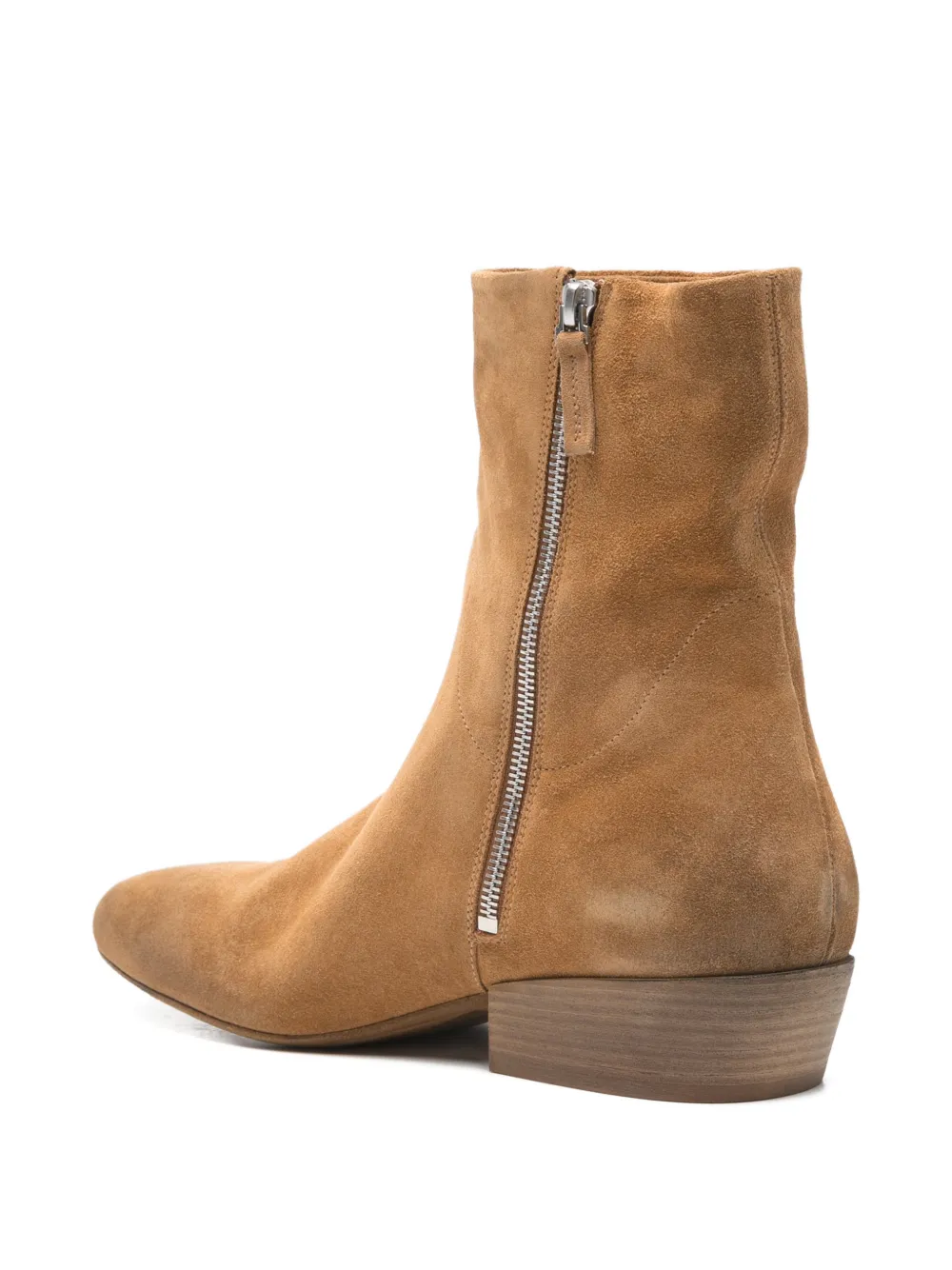 Светло-коричневый, боковая застежка-молния, закругленный носок, низкий фигурный каблук. В комплекте защитный чехол для хранения.