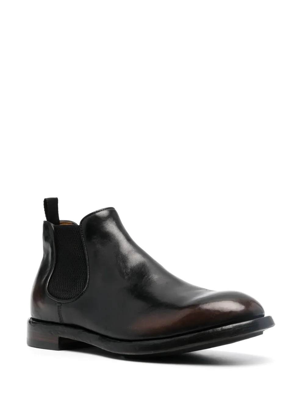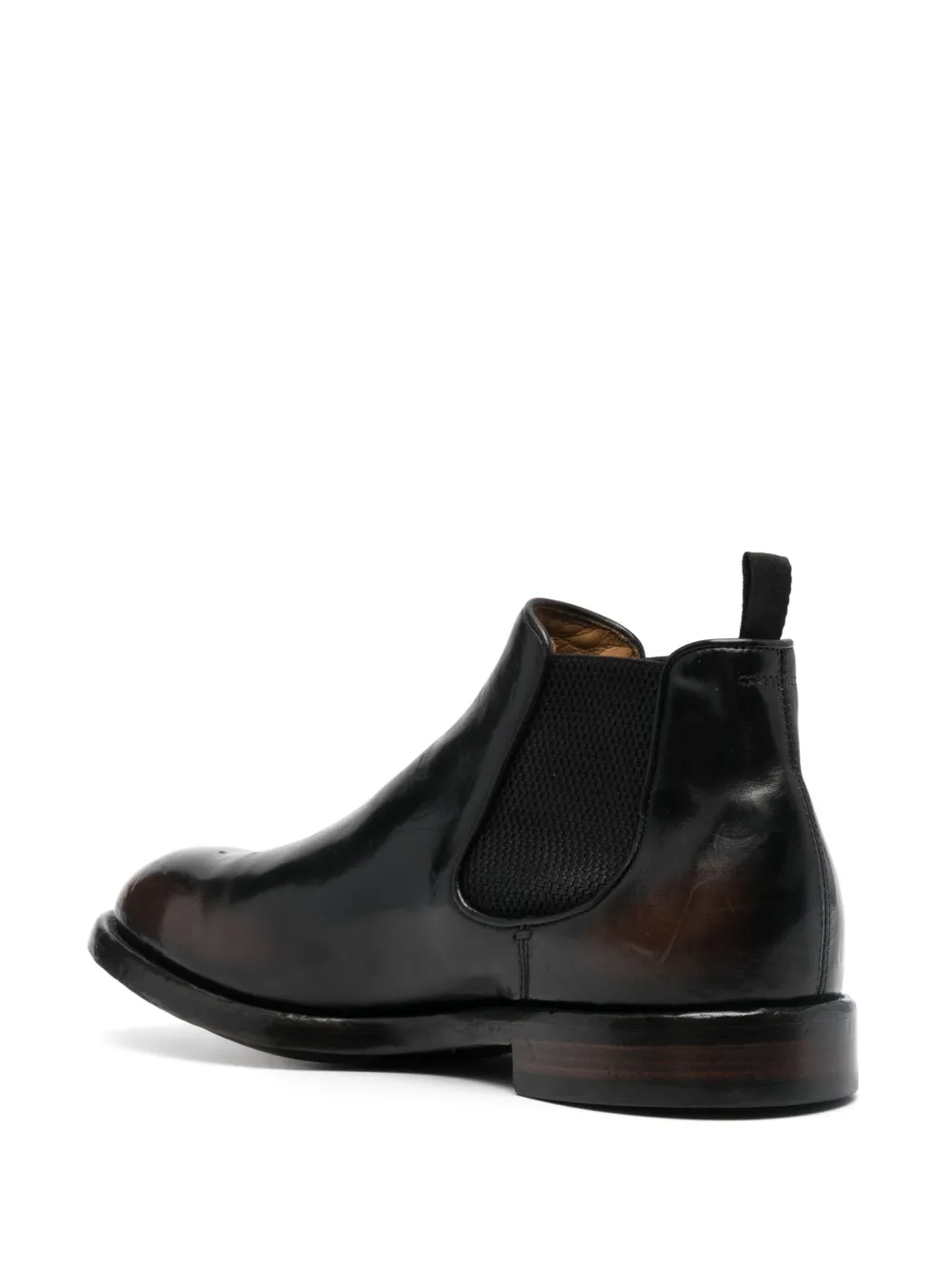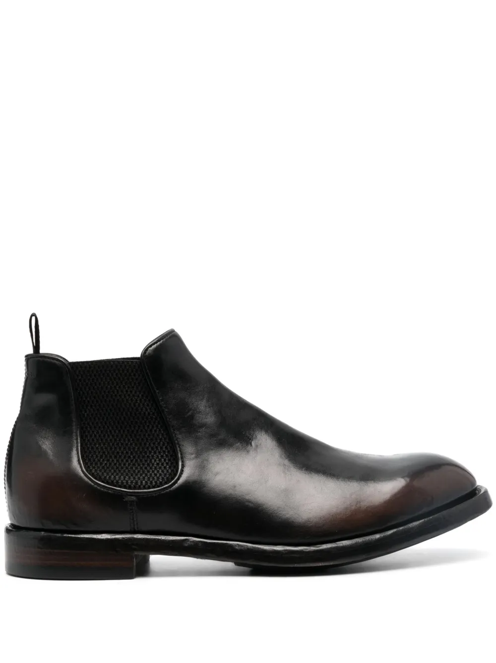 Черный, телячья кожа, эластичные боковые вставки, петля для подтягивания сзади, закругленный носок, модель без застежки и плоская резиновая подошва.