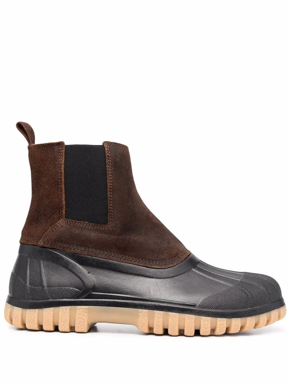 Вставки, миндалевидный носок, эластичные боковые панели, петля для подтягивания сзади, подошва на платформе и ребристая резиновая подошва.