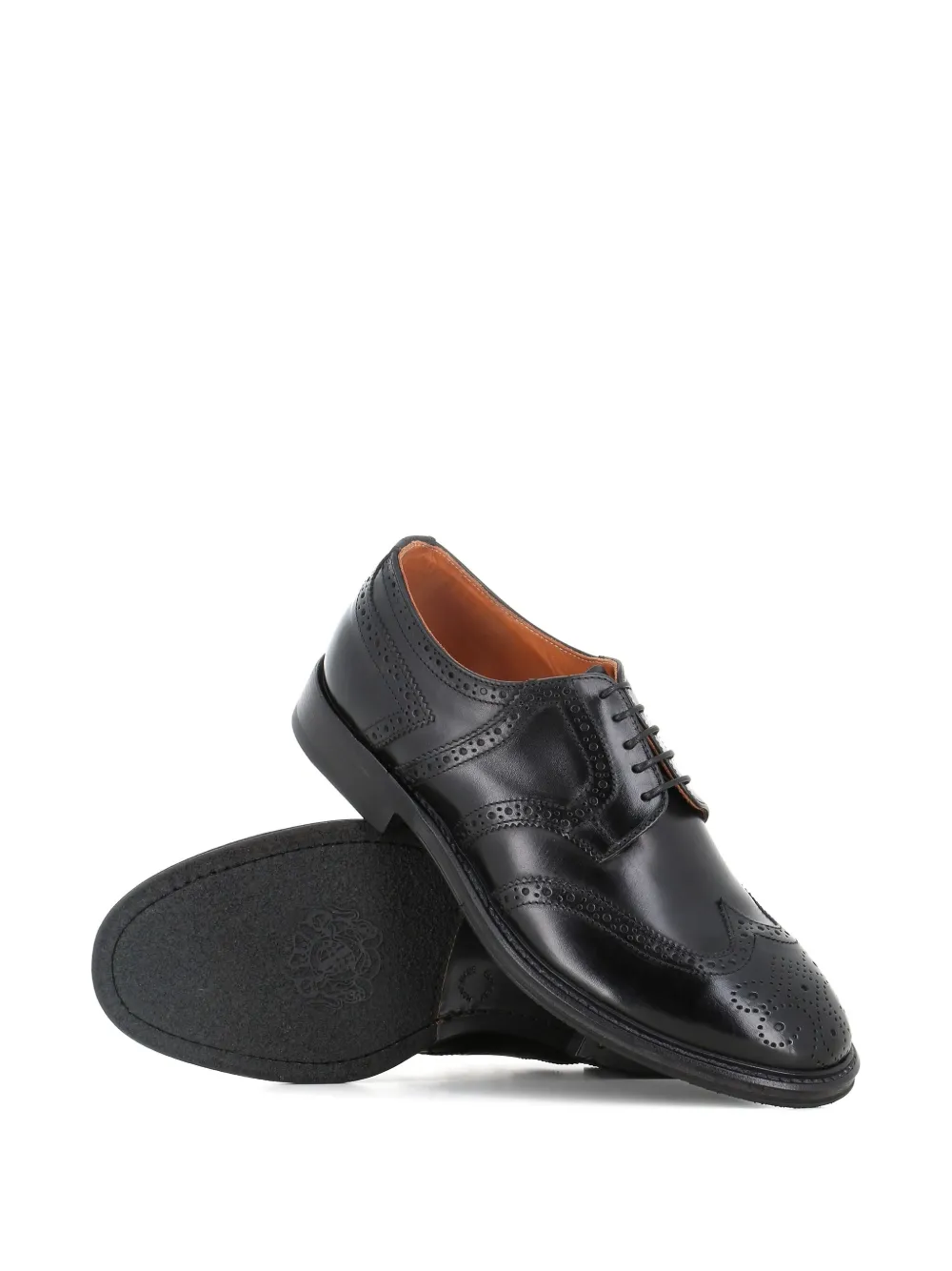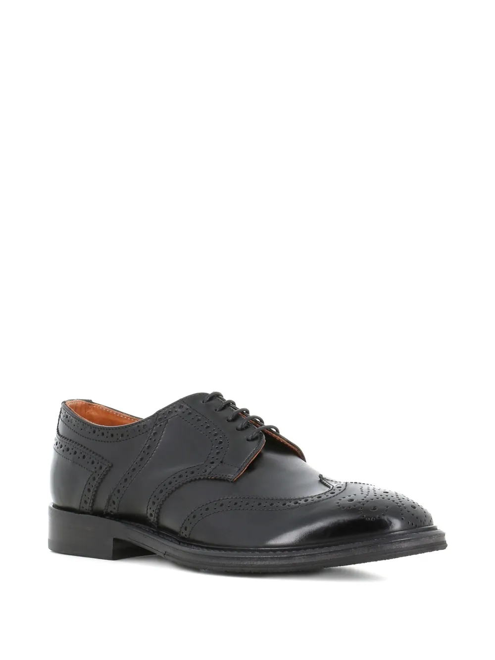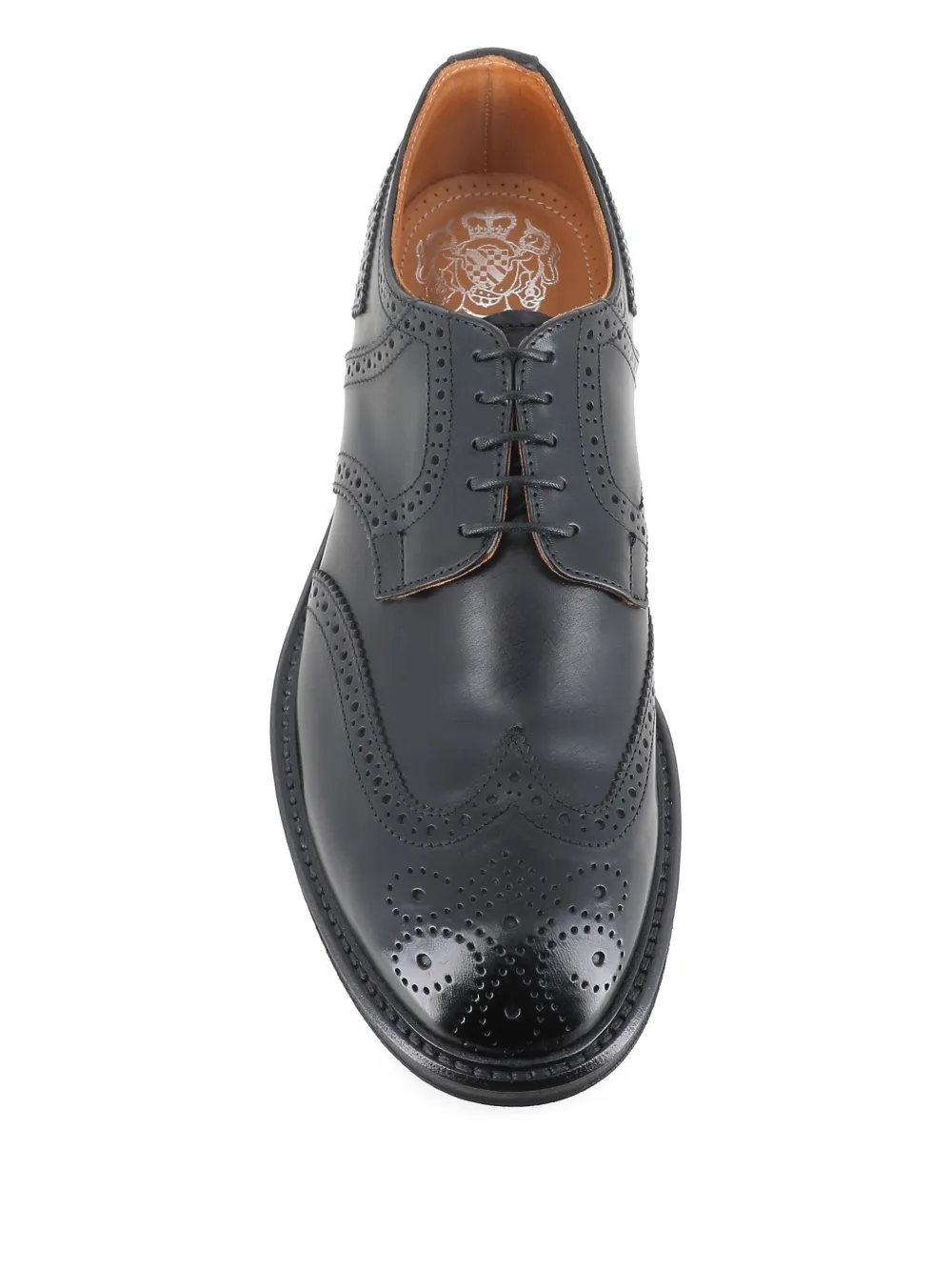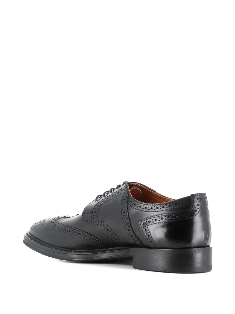 Черная телячья кожа, перфорированные детали, шнуровка, круглый носок, низкий каблук