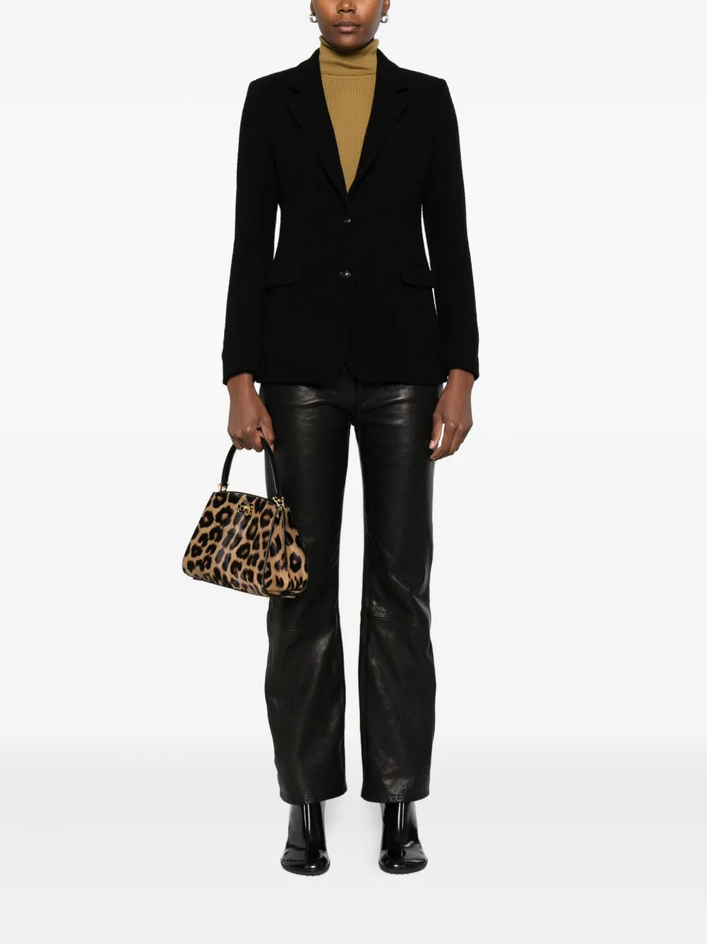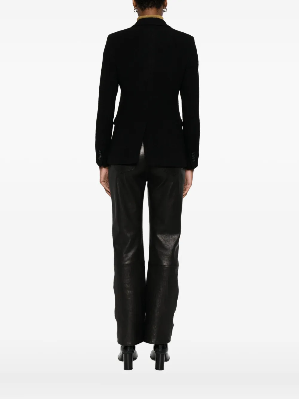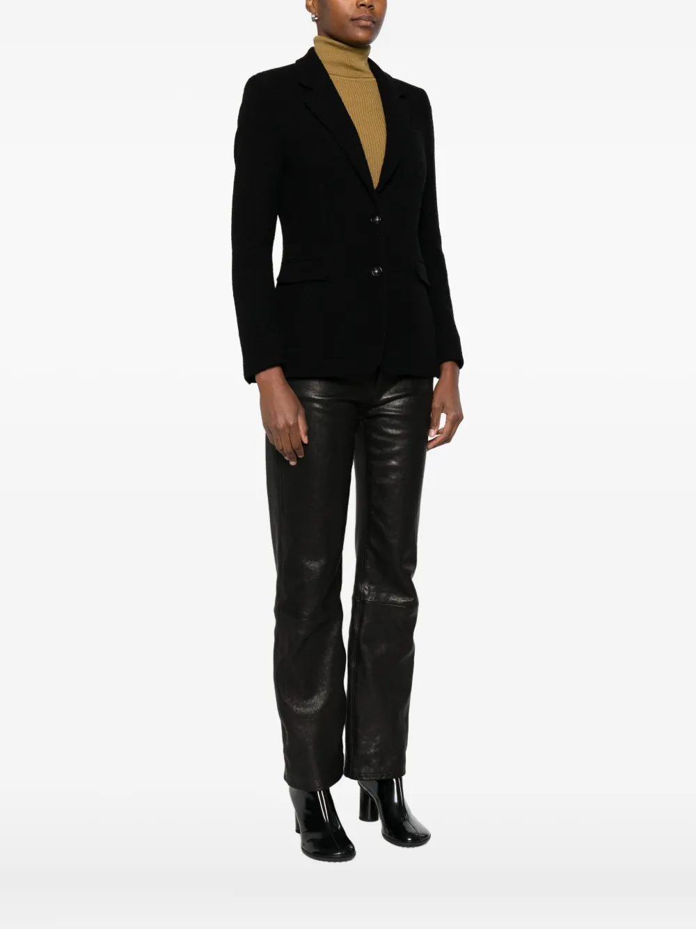 Черный букле лацканы с вырезом застежка на пуговицы клапанные карманы длинные рукава