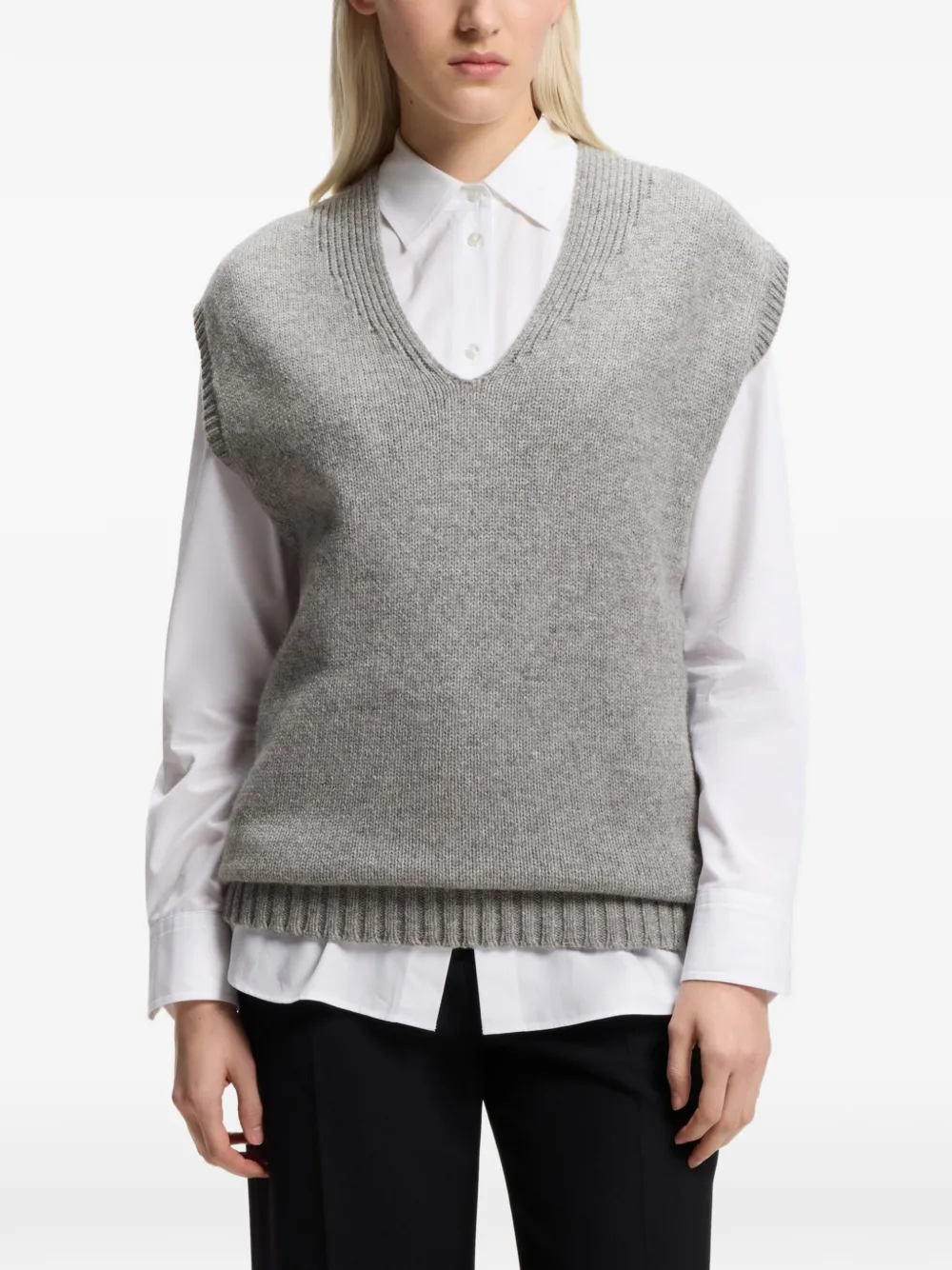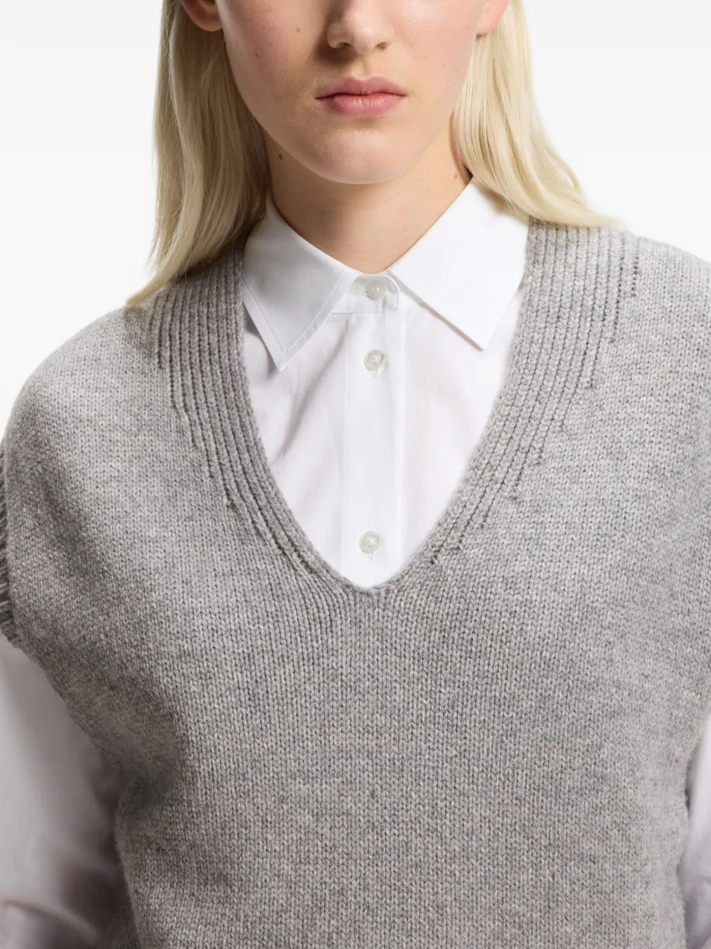Светло-серый вязаный жилет с V-образным вырезом