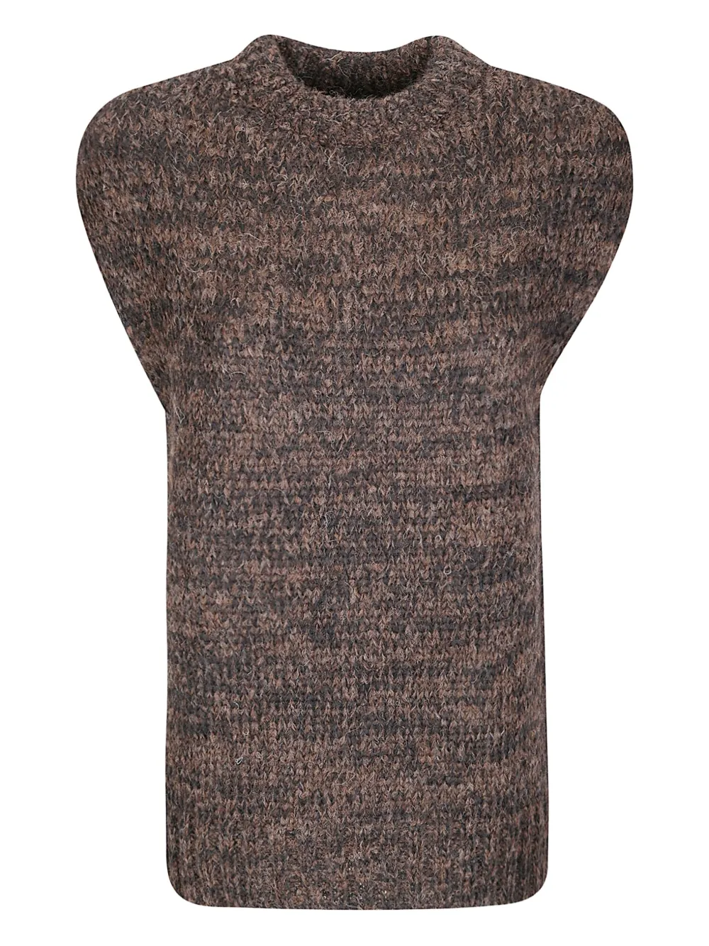 Темно-коричневый/черный безрукавный пуловер из смеси альпаки и шерсти, вязаный