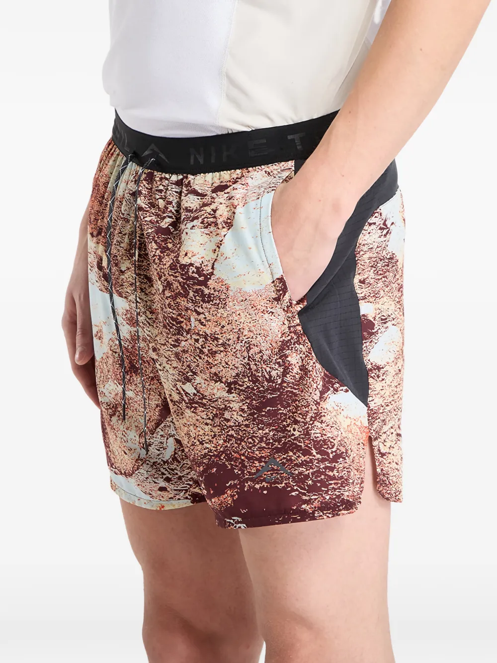 Бежевые и коричневые с принтом, боковые карманы, эластичный пояс, внутренние трусы, логотип