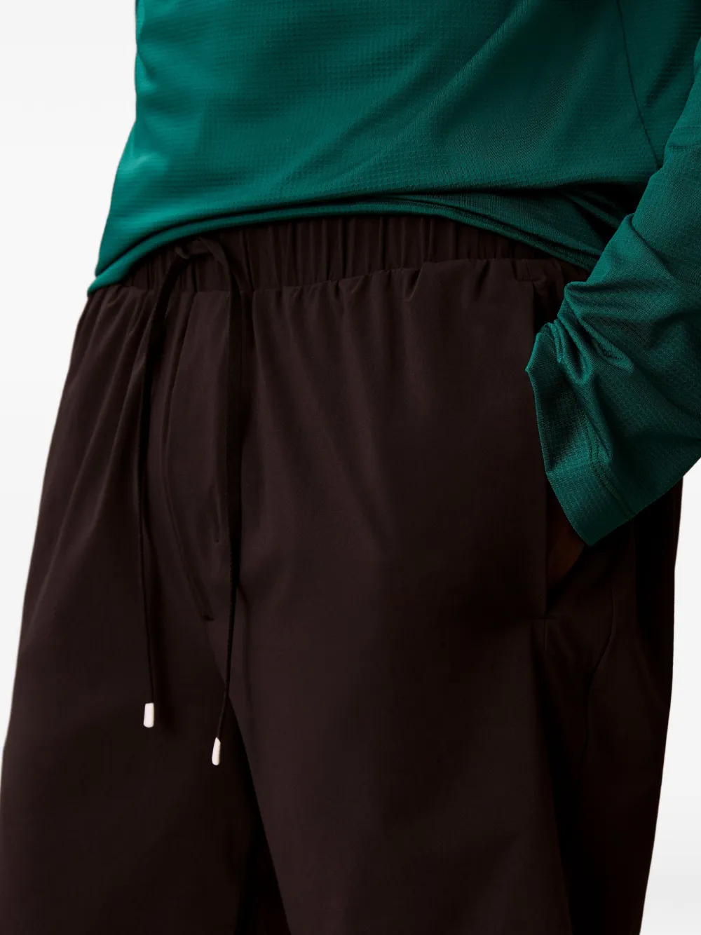 Черные, застежка на шнурке, прорезные карманы, эластичный пояс