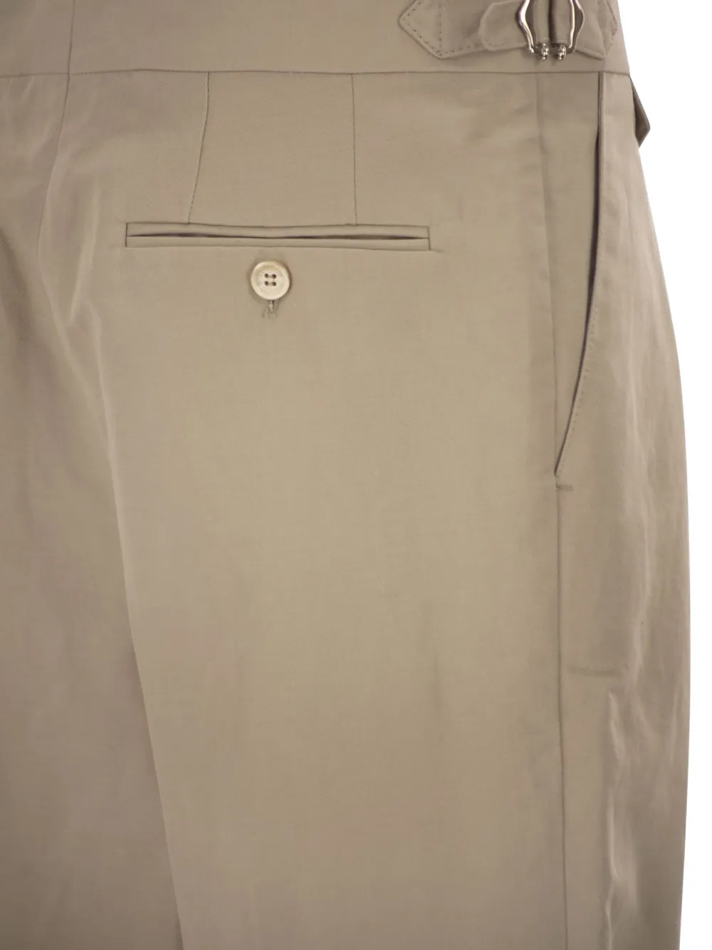 Бежевые складки сзади, прорезные карманы, подогнутый край, застежка на молнию, застежка на пуговицу
