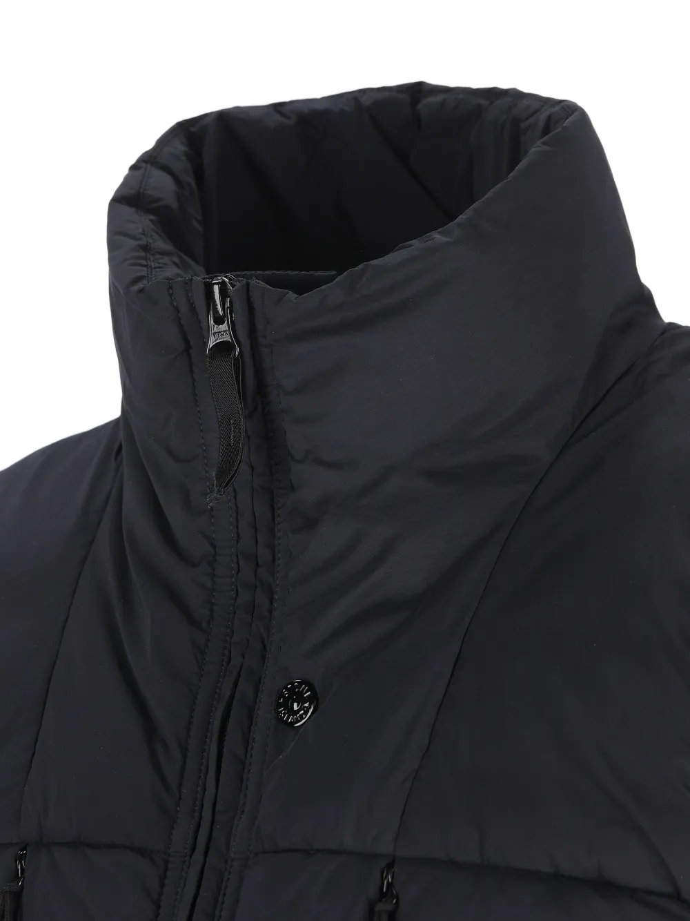 Синий стеганый дизайн, застежка-молния, высокий воротник, передние карманы на молнии, съемный знак Compass