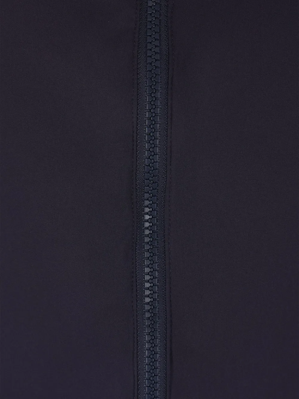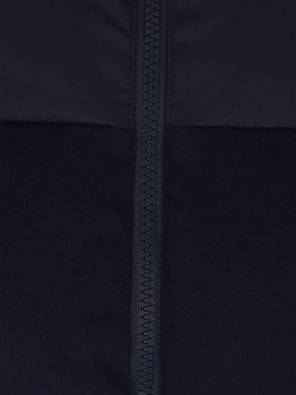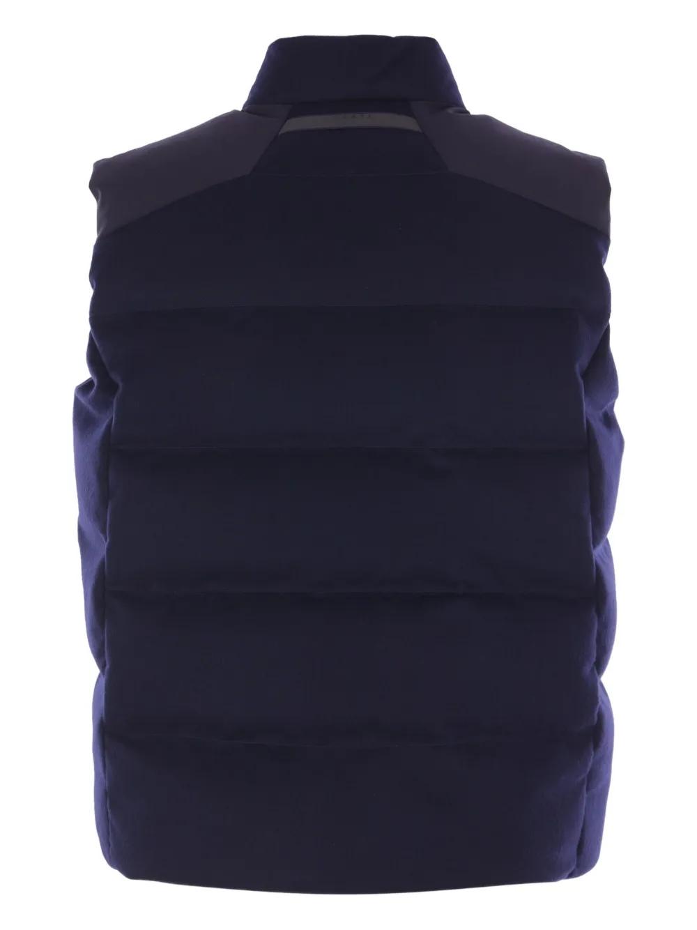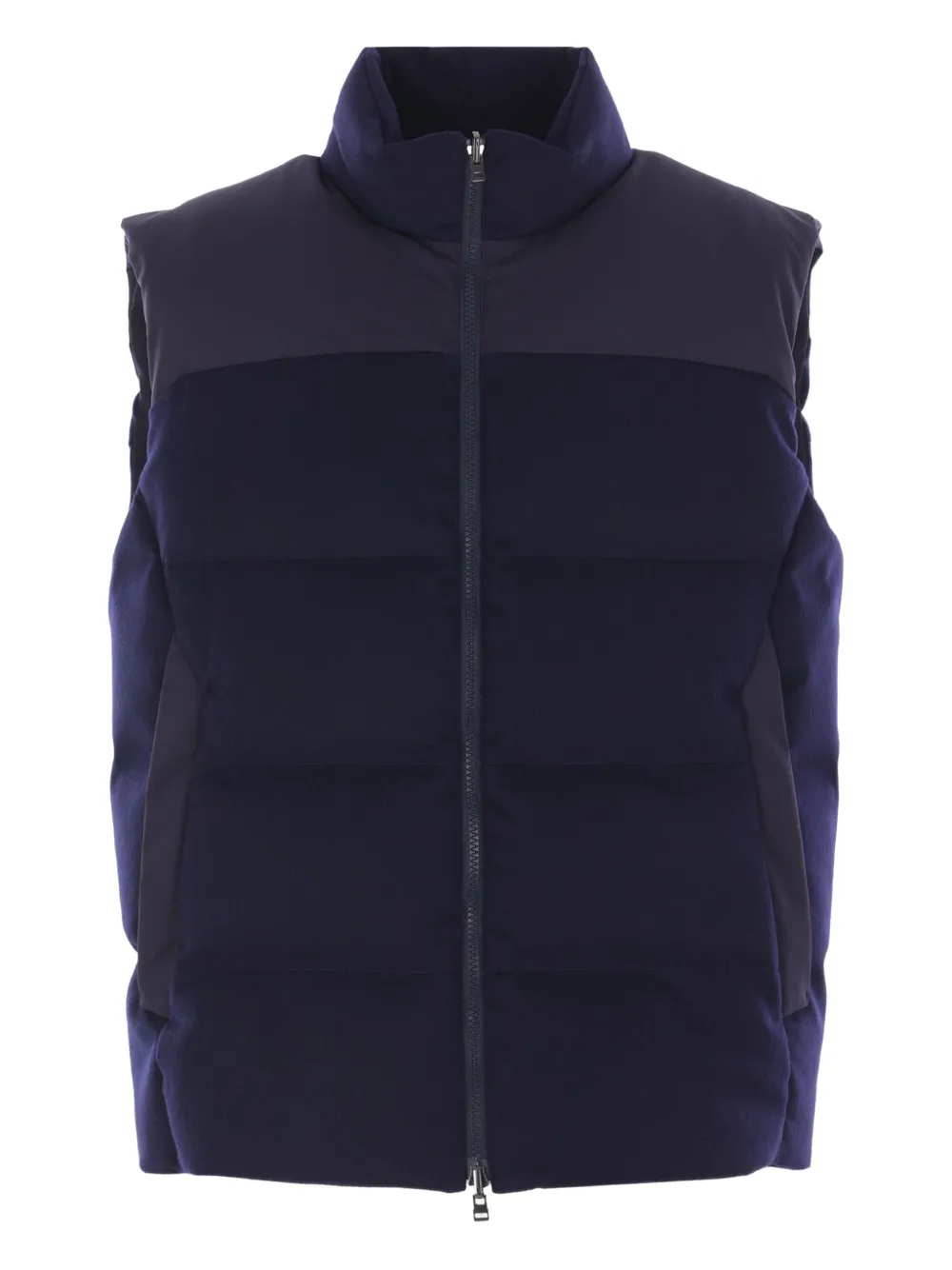 Синий стеганый жилет с застежкой-молнией, высоким воротником и панельным дизайном