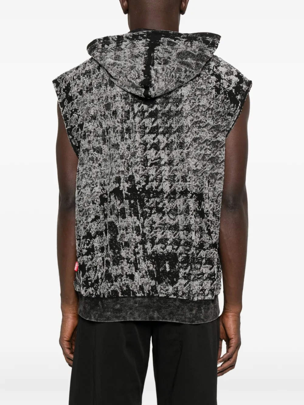 Черный эффект мраморности без рукавов капюшон застежка-молния спереди карман-кенгуру