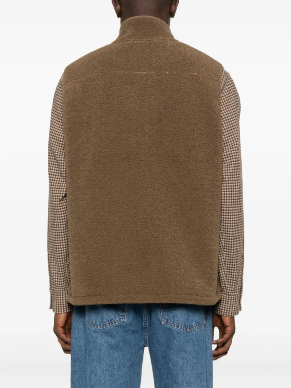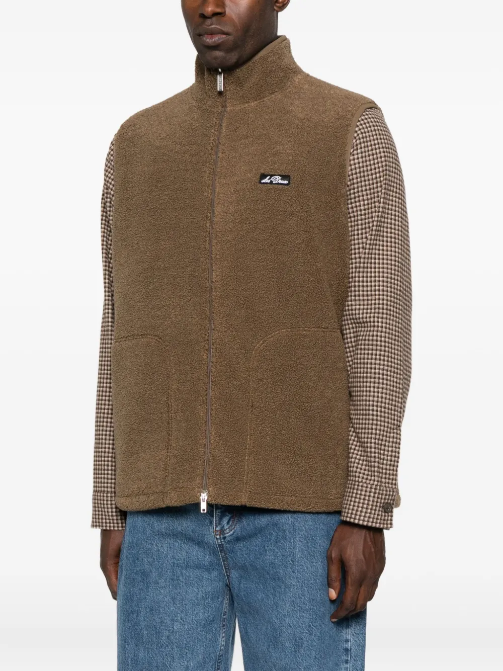 Коричневый высокий воротник застежка на молнии без рукавов текстурированный флис нашивка с логотипом