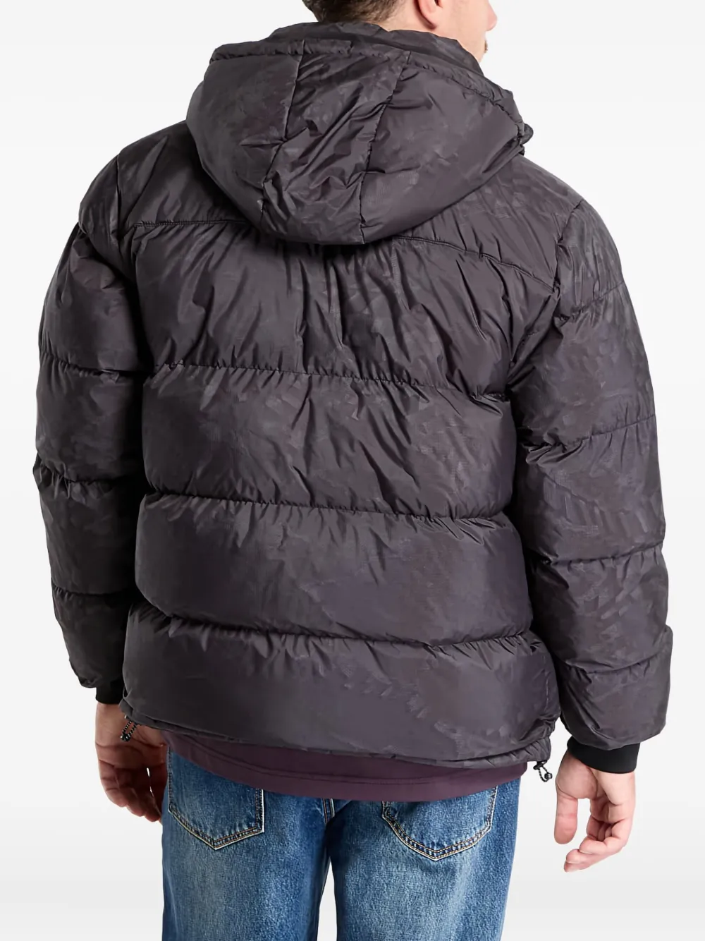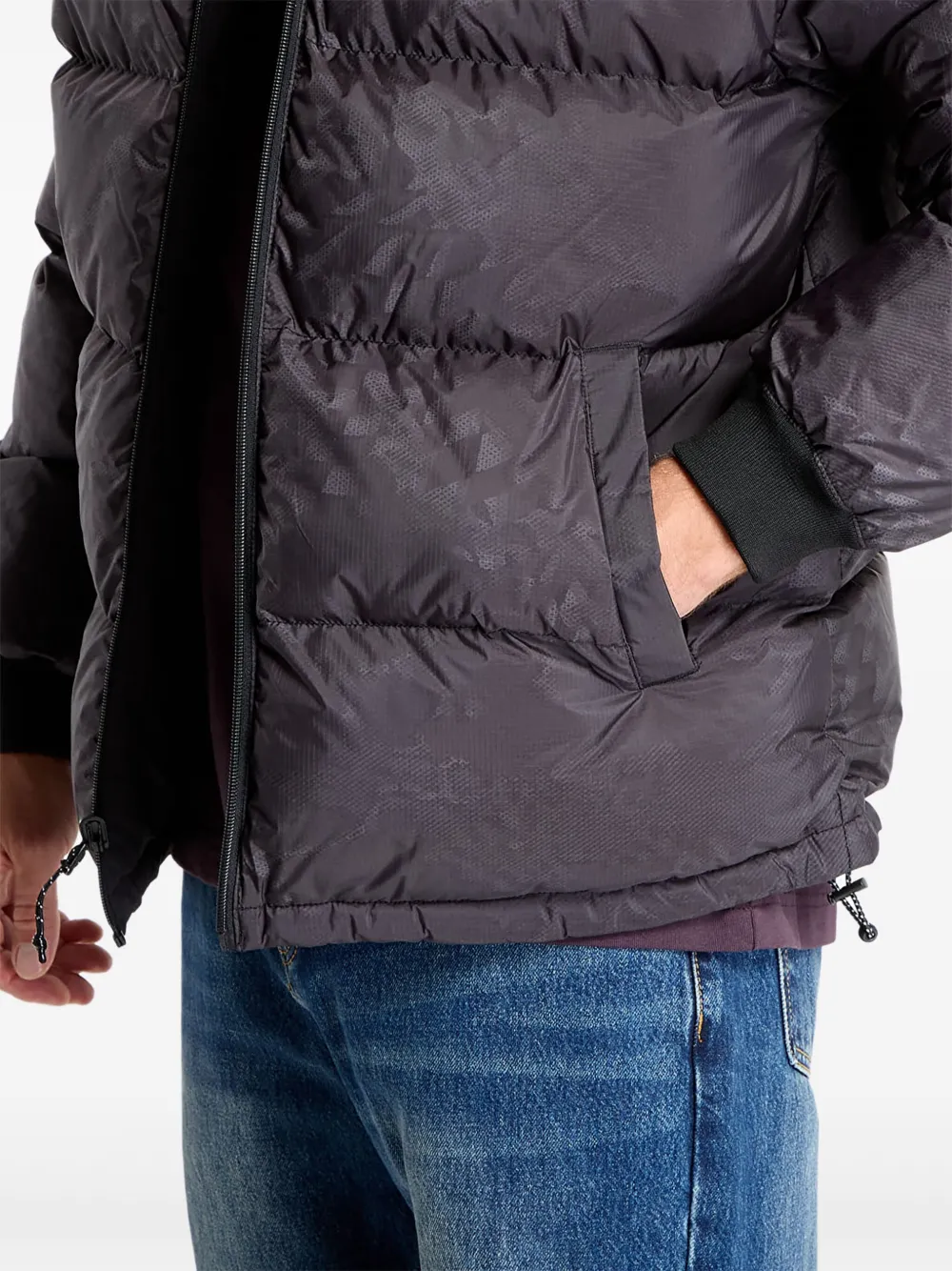 Черная куртка с узором, капюшоном, логотипом, на молнии, двусторонняя
