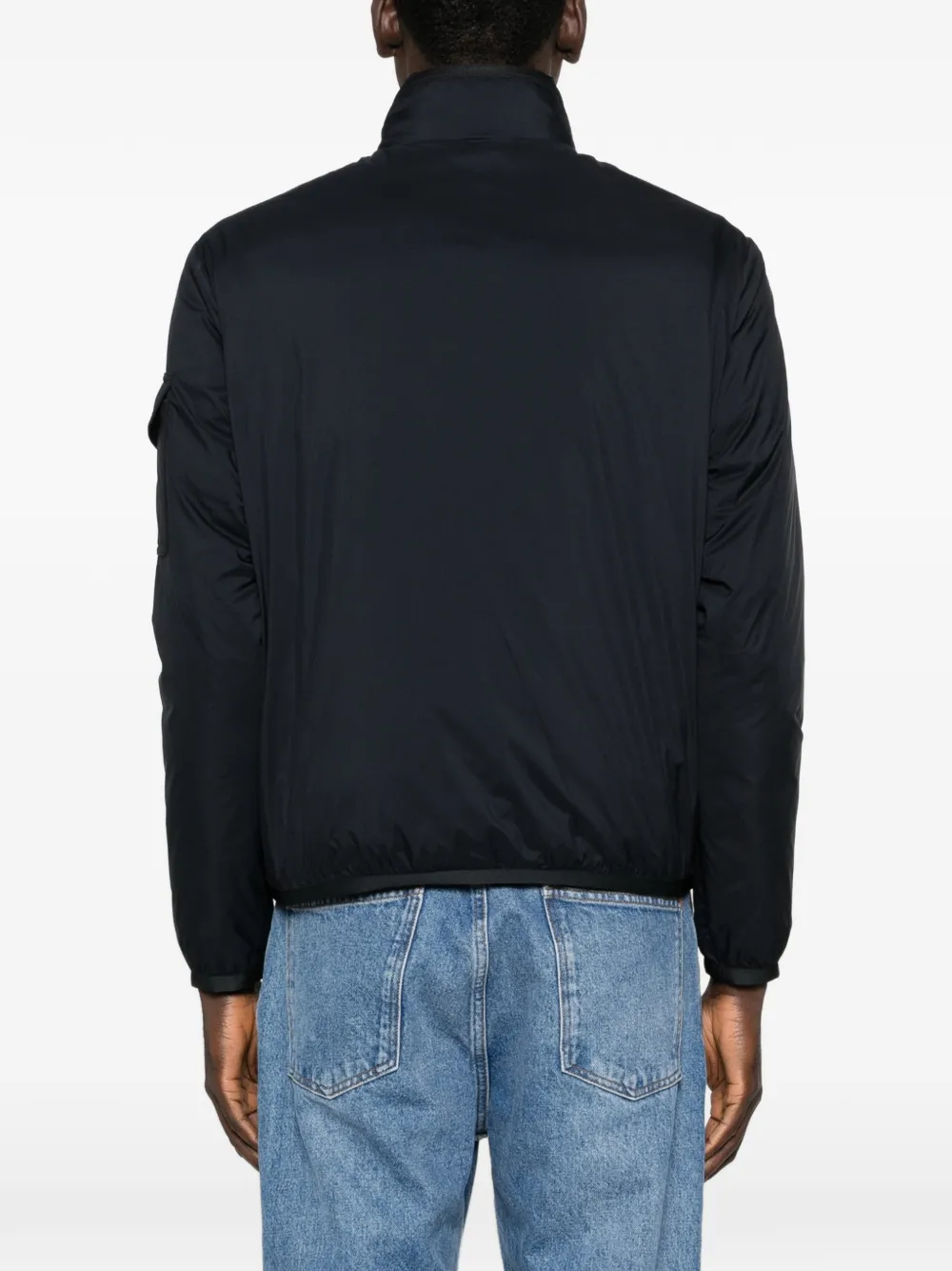 Синий цвет, нагрудный карман, застежка-молния, высокий воротник, длинные рукава, эластичные манжеты
