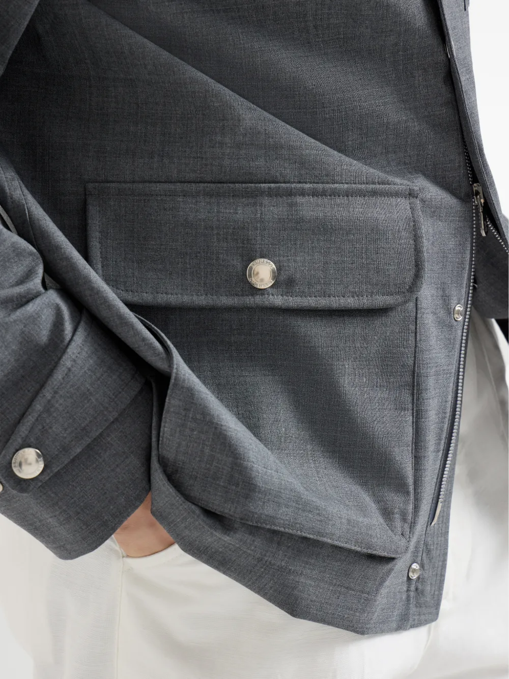 Серый, чистая шерсть, нагрудный карман, карманы с клапанами