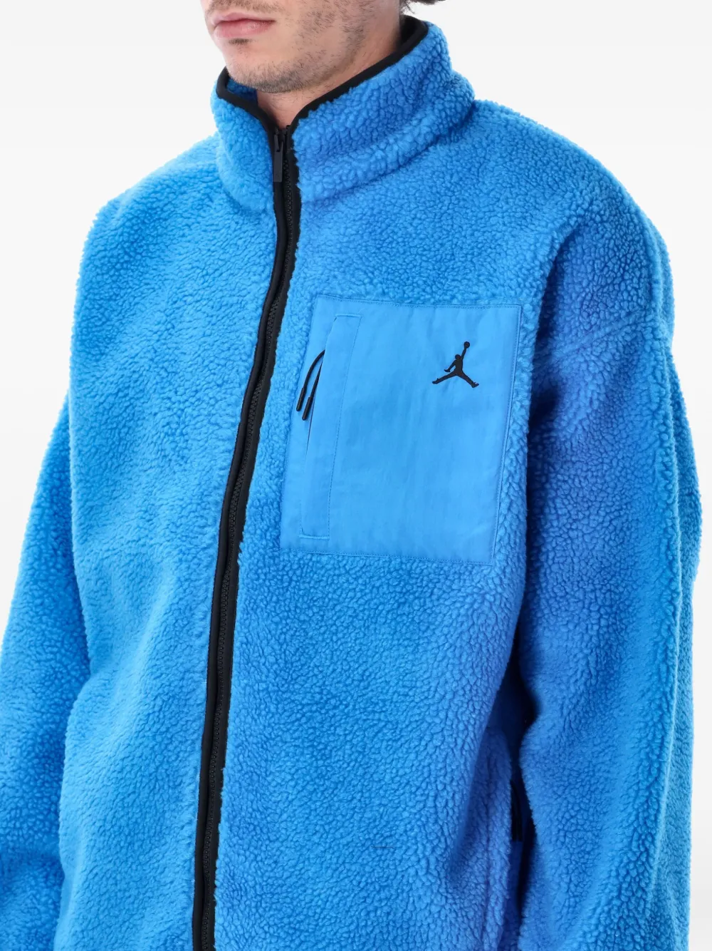 Синий цвет, нагрудный карман, застежка-молния, высокий воротник, длинные рукава, логотип