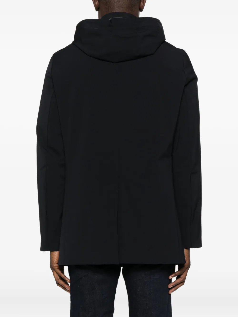 Темно-синий съемный капюшон застежка на пуговицы длинные рукава боковые карманы прямой край