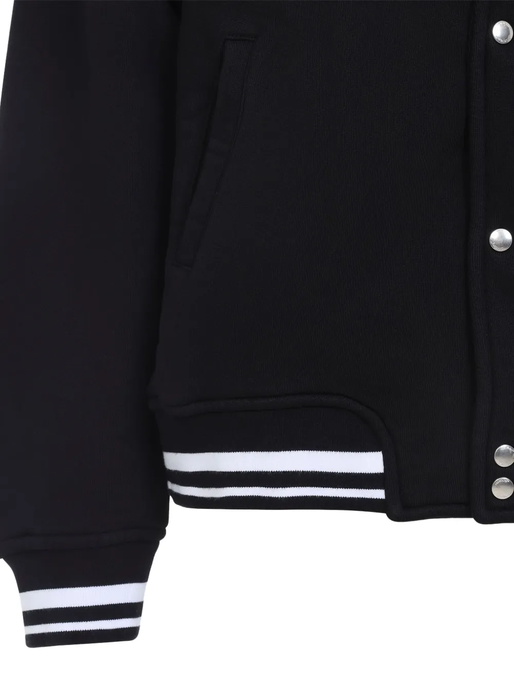 Черный капюшон на кулиске вышитый логотип застежка на пуговицы полосатая отделка рукава-реглан