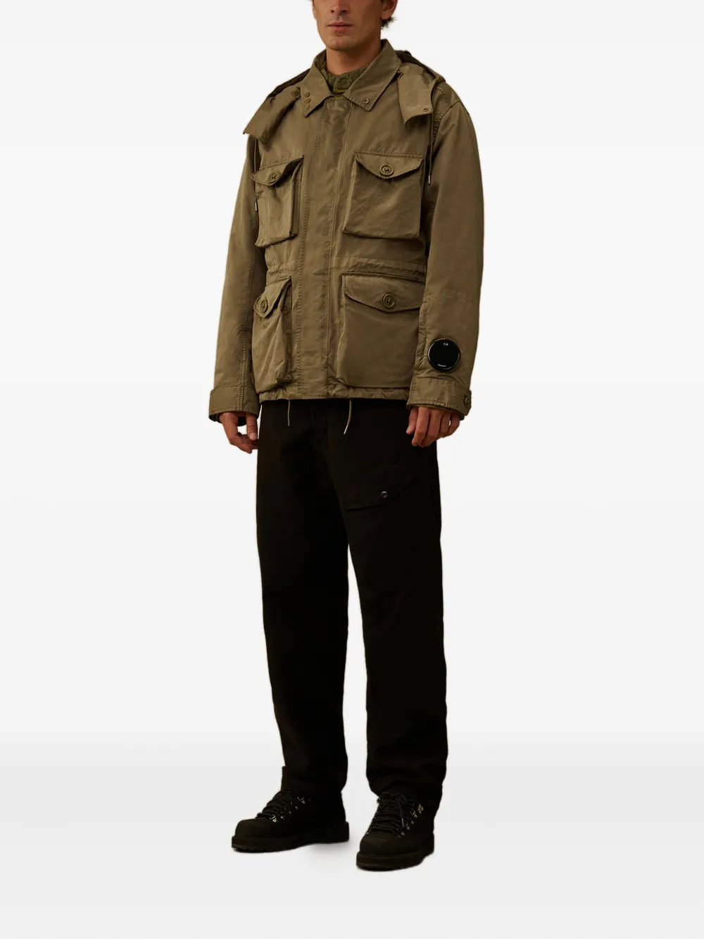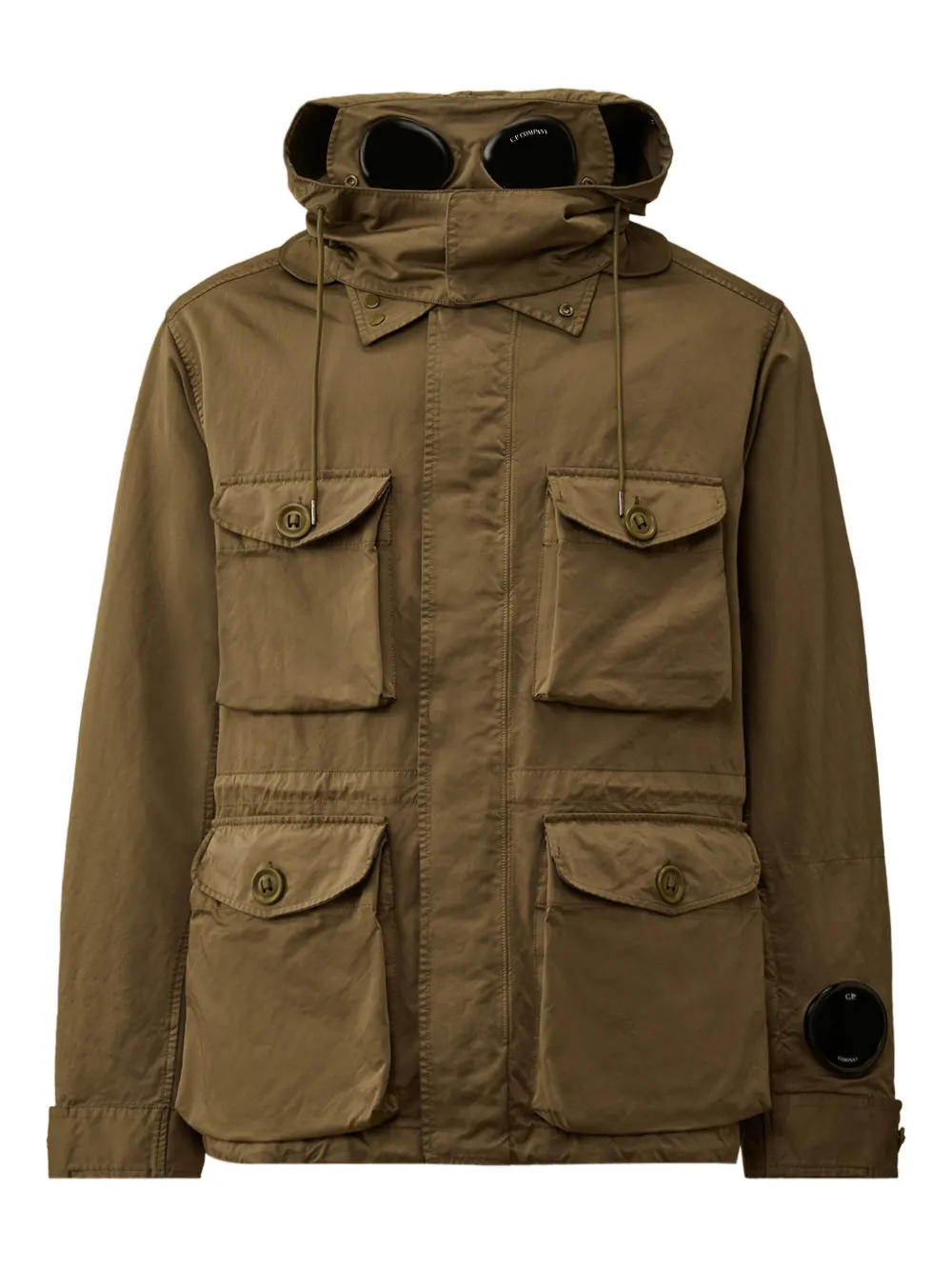 Оливково-зеленый фирменная деталь Goggle скрытая застежка на кнопках множество накладных карманов длинные рукава манжеты на пуговицах C.P. Company рекомендует снимать все съемные аксессуары перед стиркой.