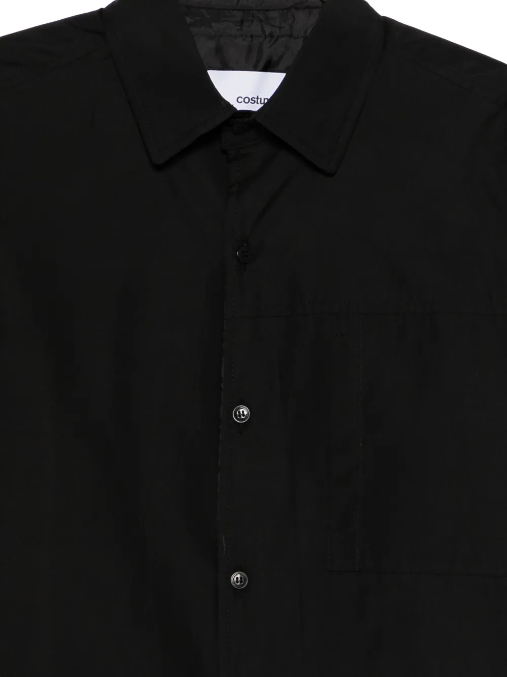Черная рубашка с застежкой на пуговицы, длинными рукавами, нагрудным карманом, классическим воротником и прямым подолом