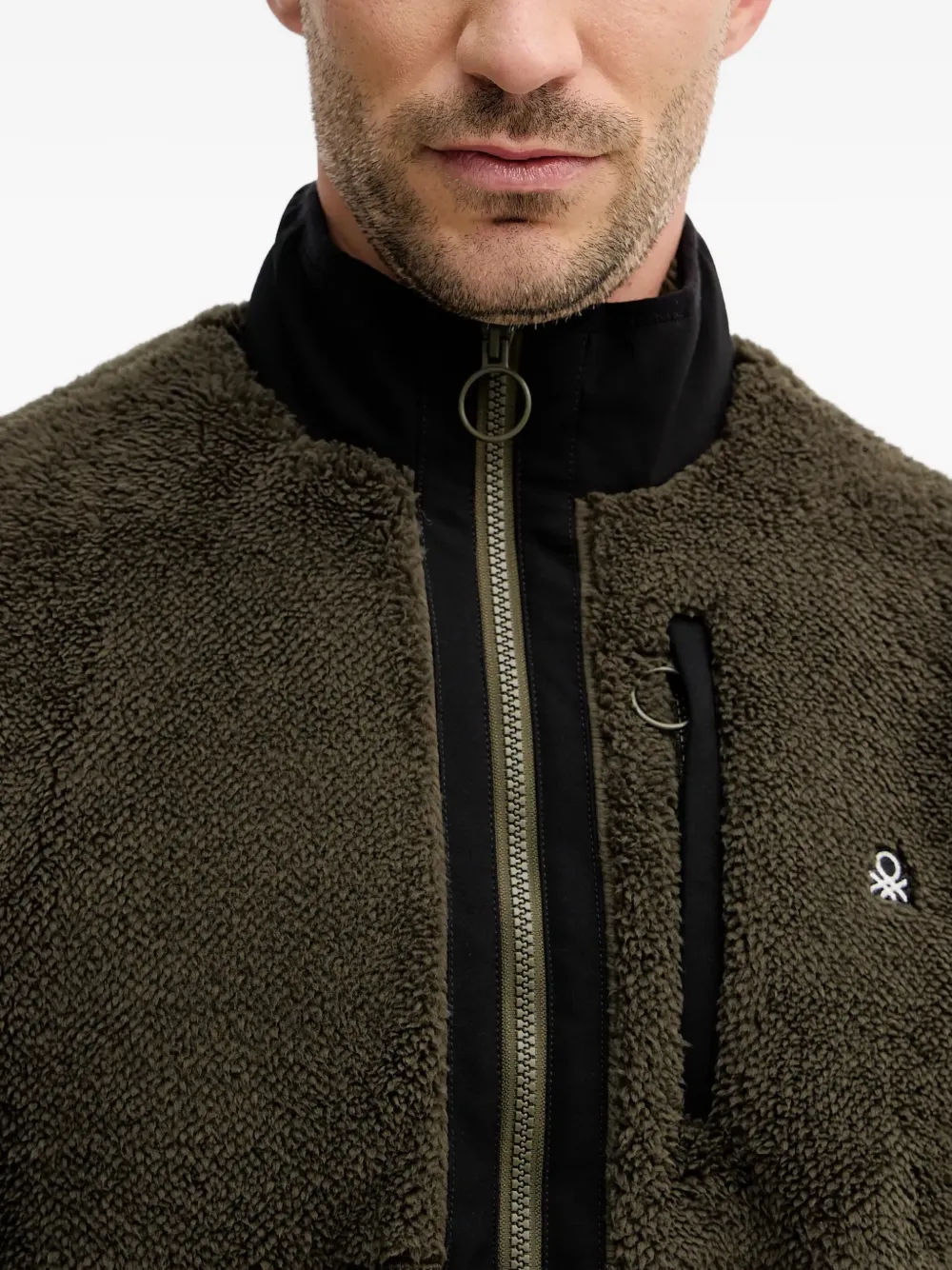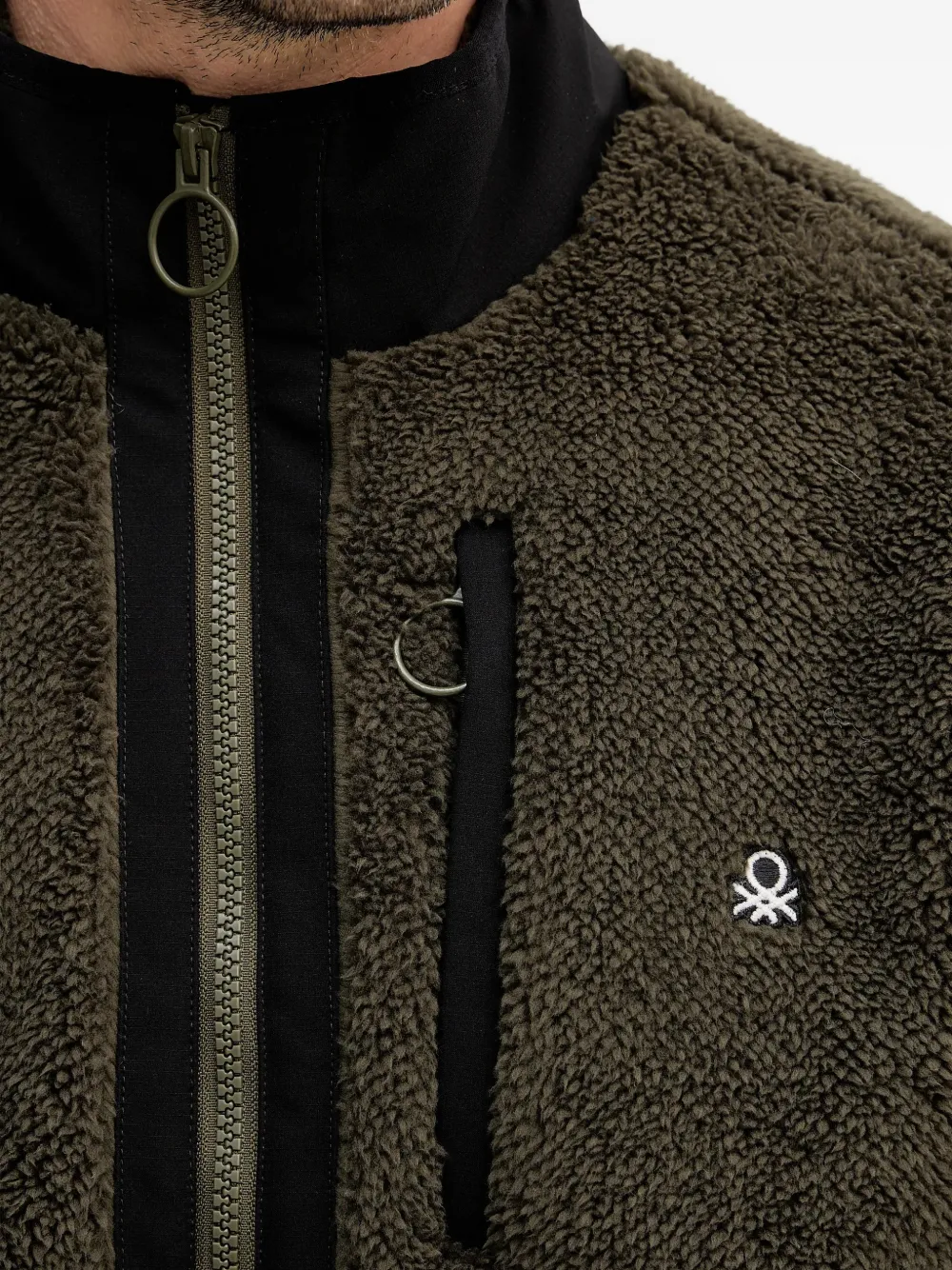 Оливково-зеленый джемпер на молнии с воротником-стойкой, нагрудным карманом, прямого кроя, с длинными рукавами
