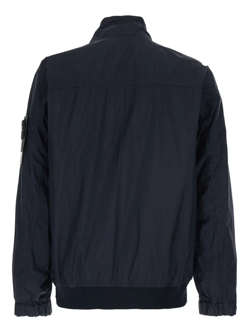 Синий цвет, застежка-молния, воротник-стойка, нашивка с логотипом на рукаве, ребристый низ, ребристые манжеты