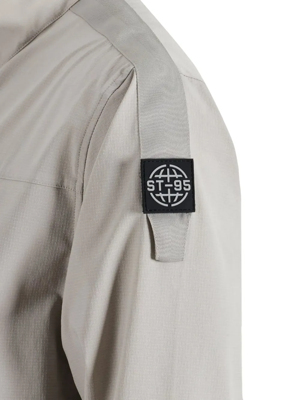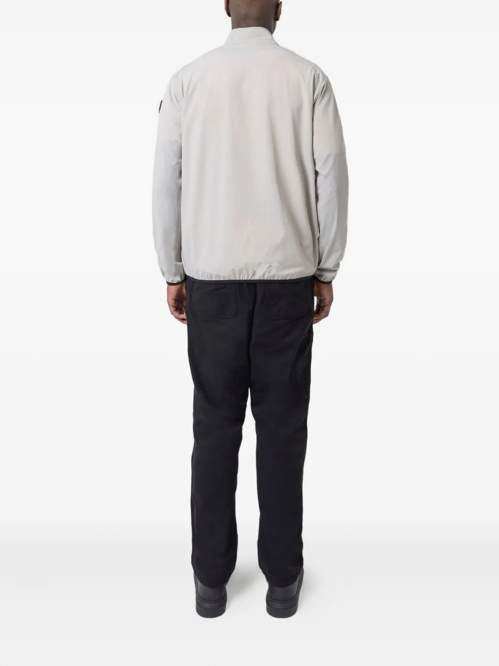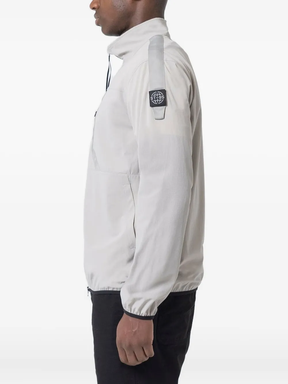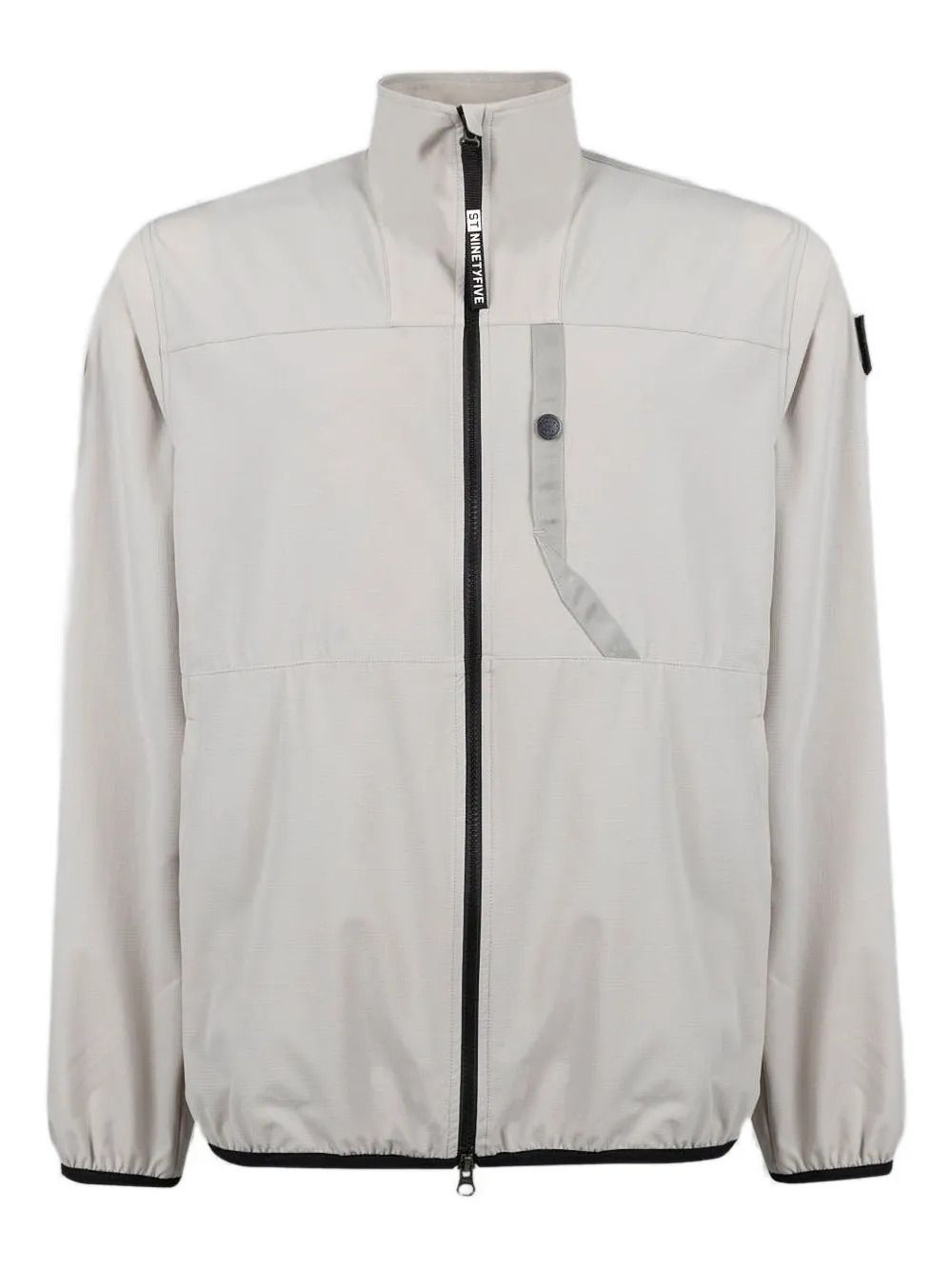 Светло-серый цвет, застежка-молния, высокий воротник, нашивка с логотипом, длинные рукава, эластичный низ