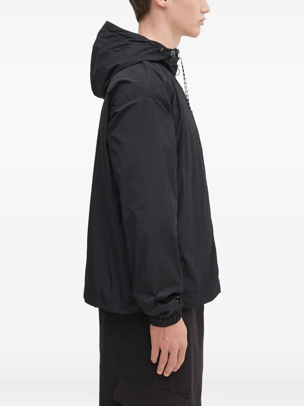 Черный цвет, капюшон с кулиской, застежка-молния спереди, длинные рукава, эластичные манжеты и пояс