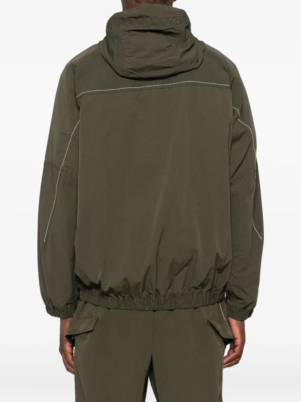 Зеленый худи на кулиске, застежка-молния спереди, два передних накладных кармана с клапанами, эластичный низ, фирменный логотип